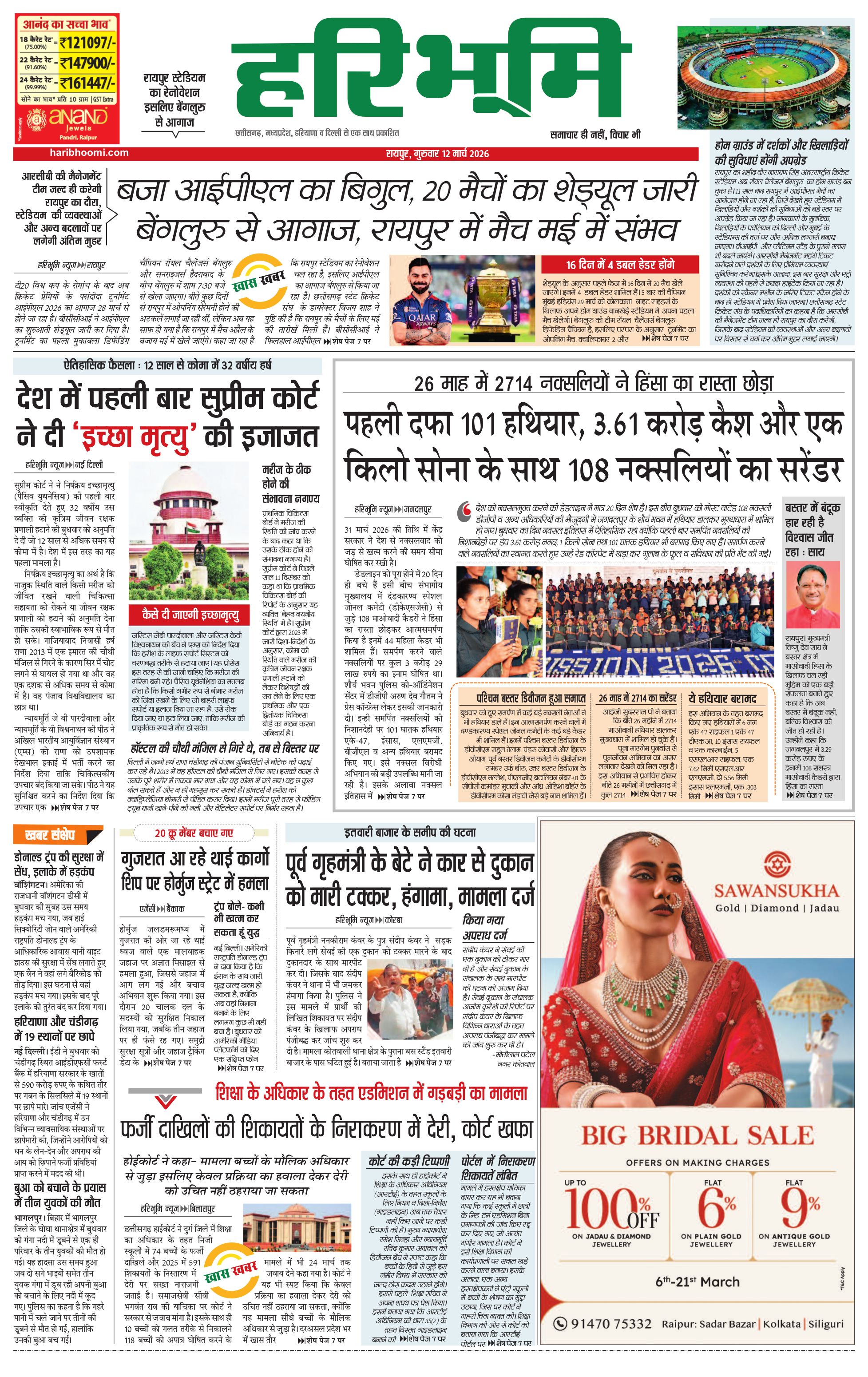 रायपुर मुख्य संस्करण - 12 Mar 2026 - - Page 1