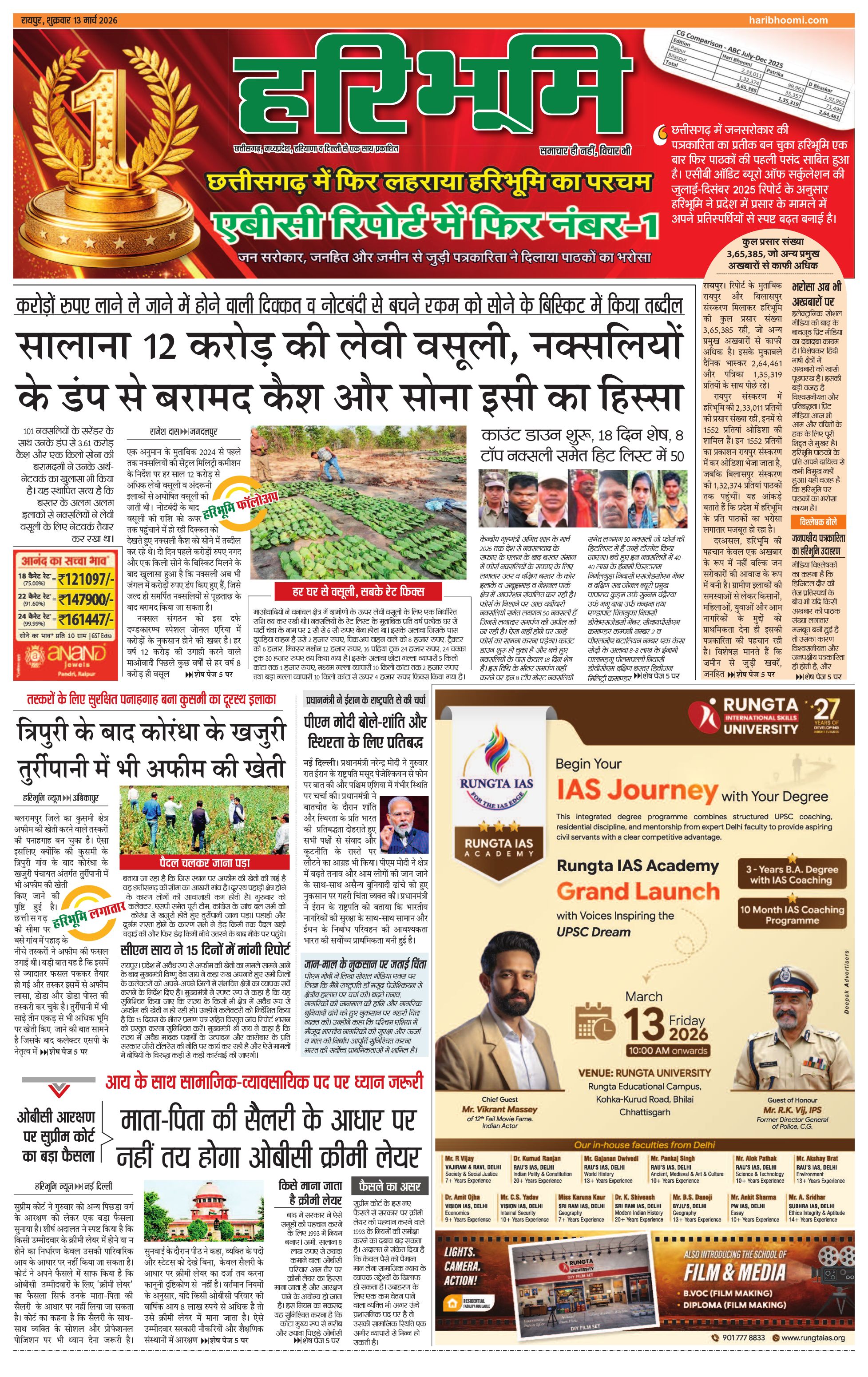 रायपुर मुख्य संस्करण - 13 Mar 2026 - - Page 1