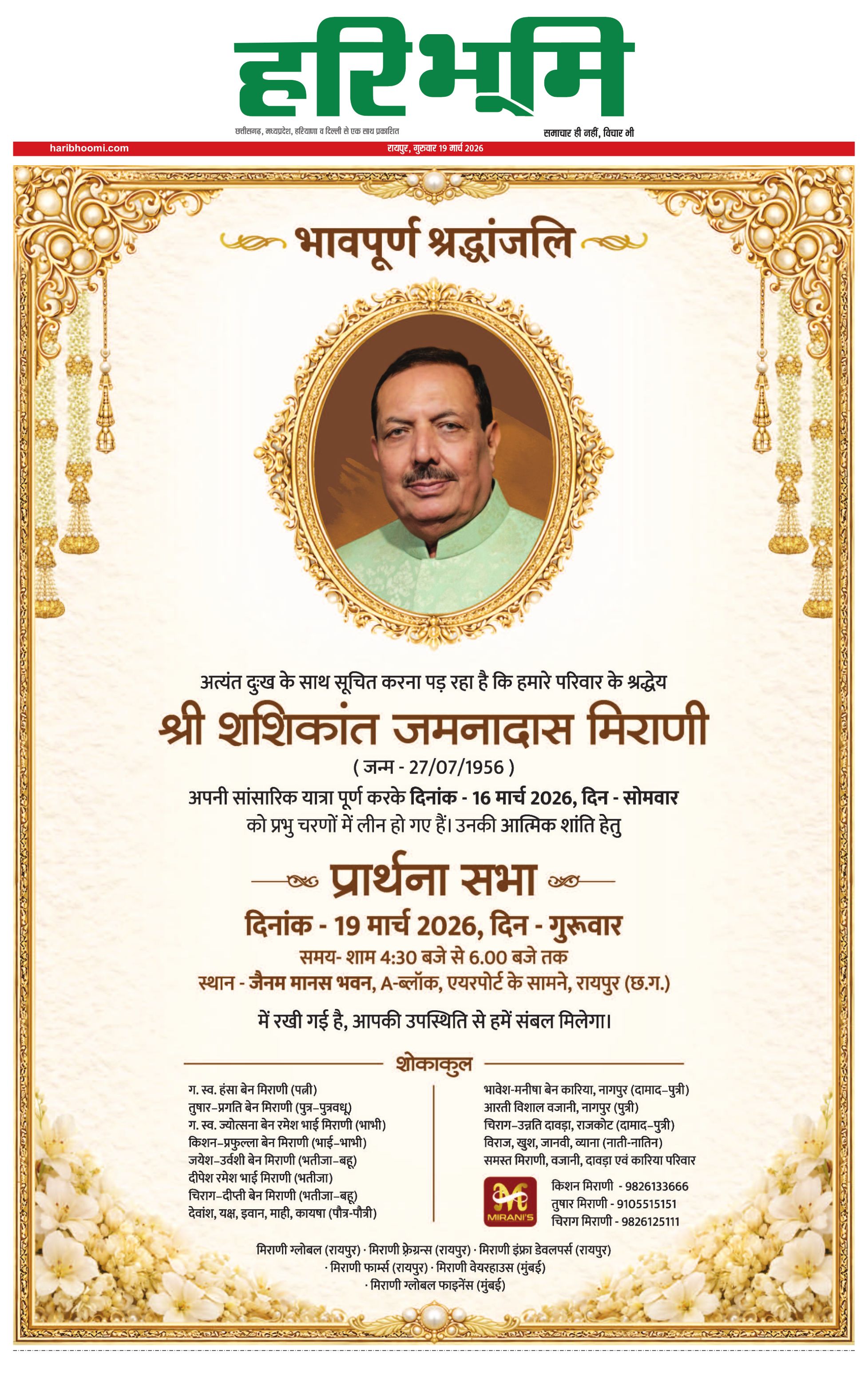 रायपुर मुख्य संस्करण - 19 Mar 2026 - - Page 1
