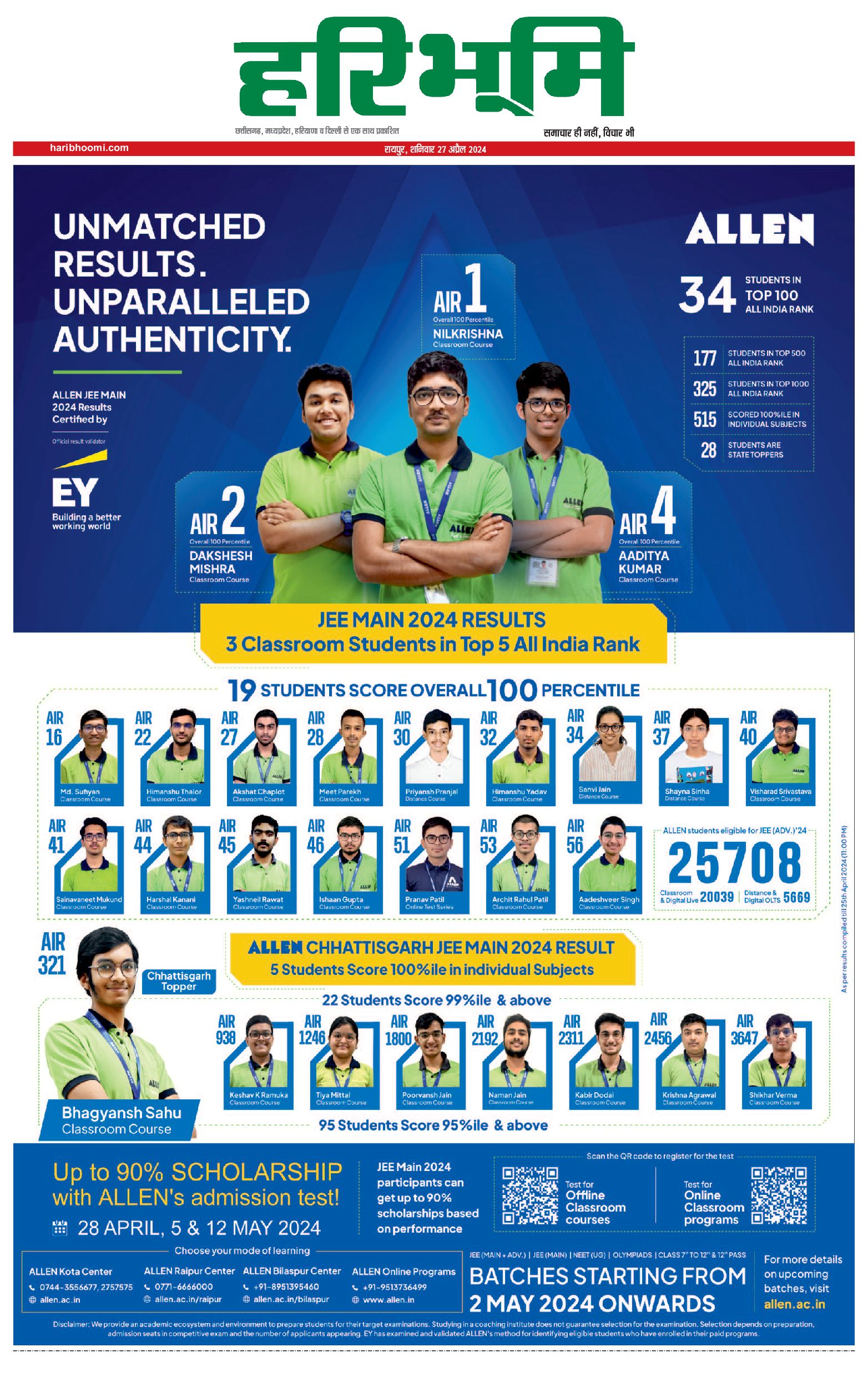 रायपुर मुख्य संस्करण - 27 Apr 2024 - - Page 1