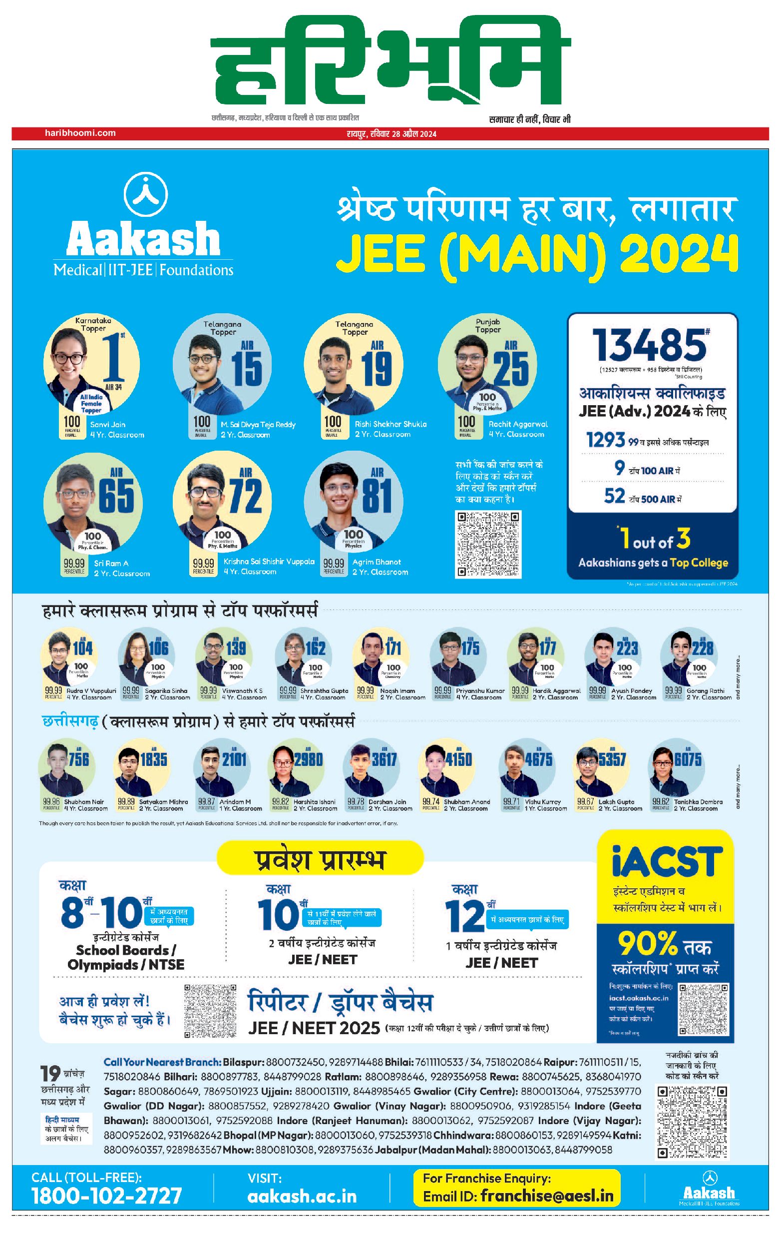 रायपुर मुख्य संस्करण - 28 Apr 2024 - - Page 1