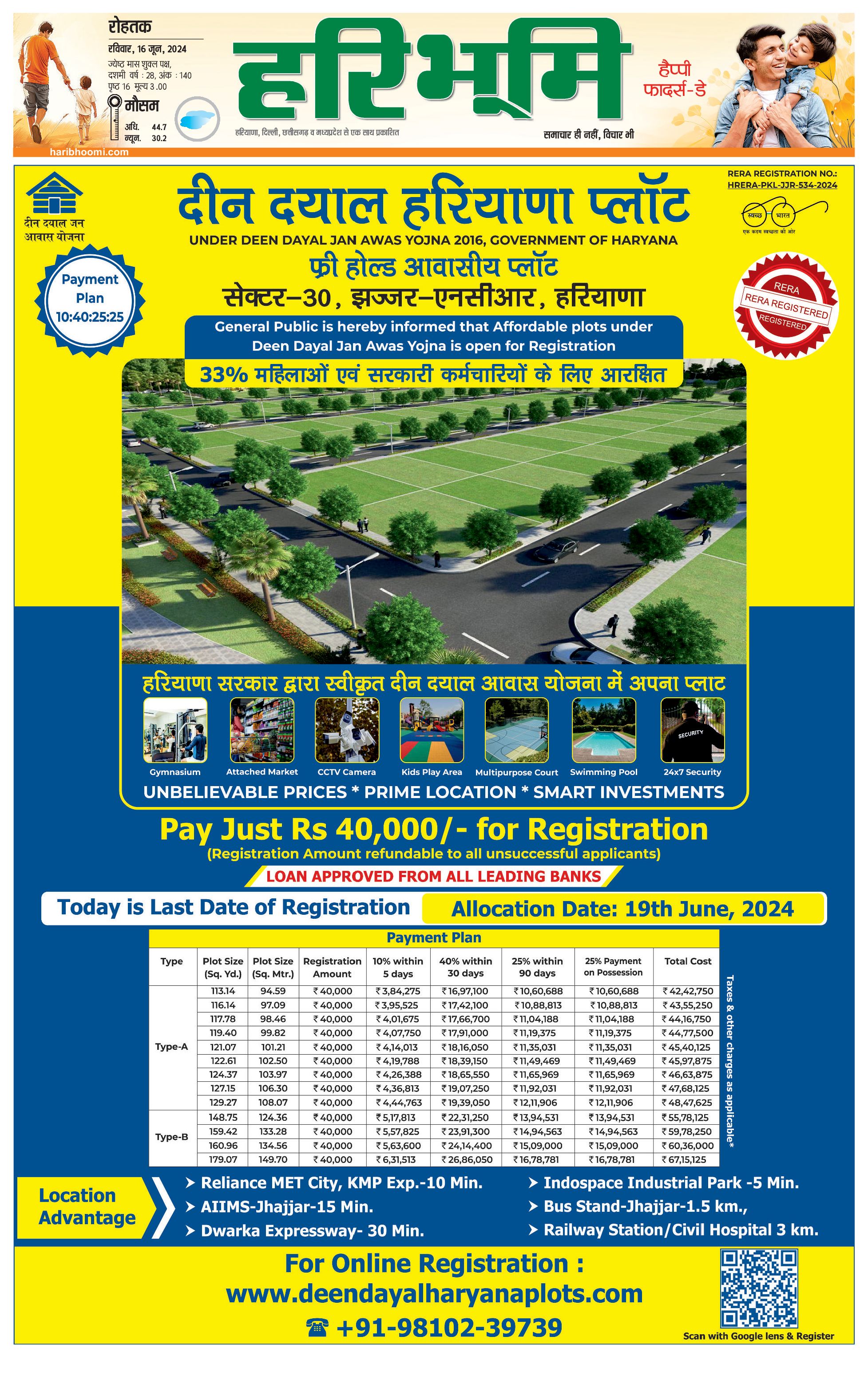 रोहतक मुख्य संस्करण - 16 Jun 2024 - - Page 1