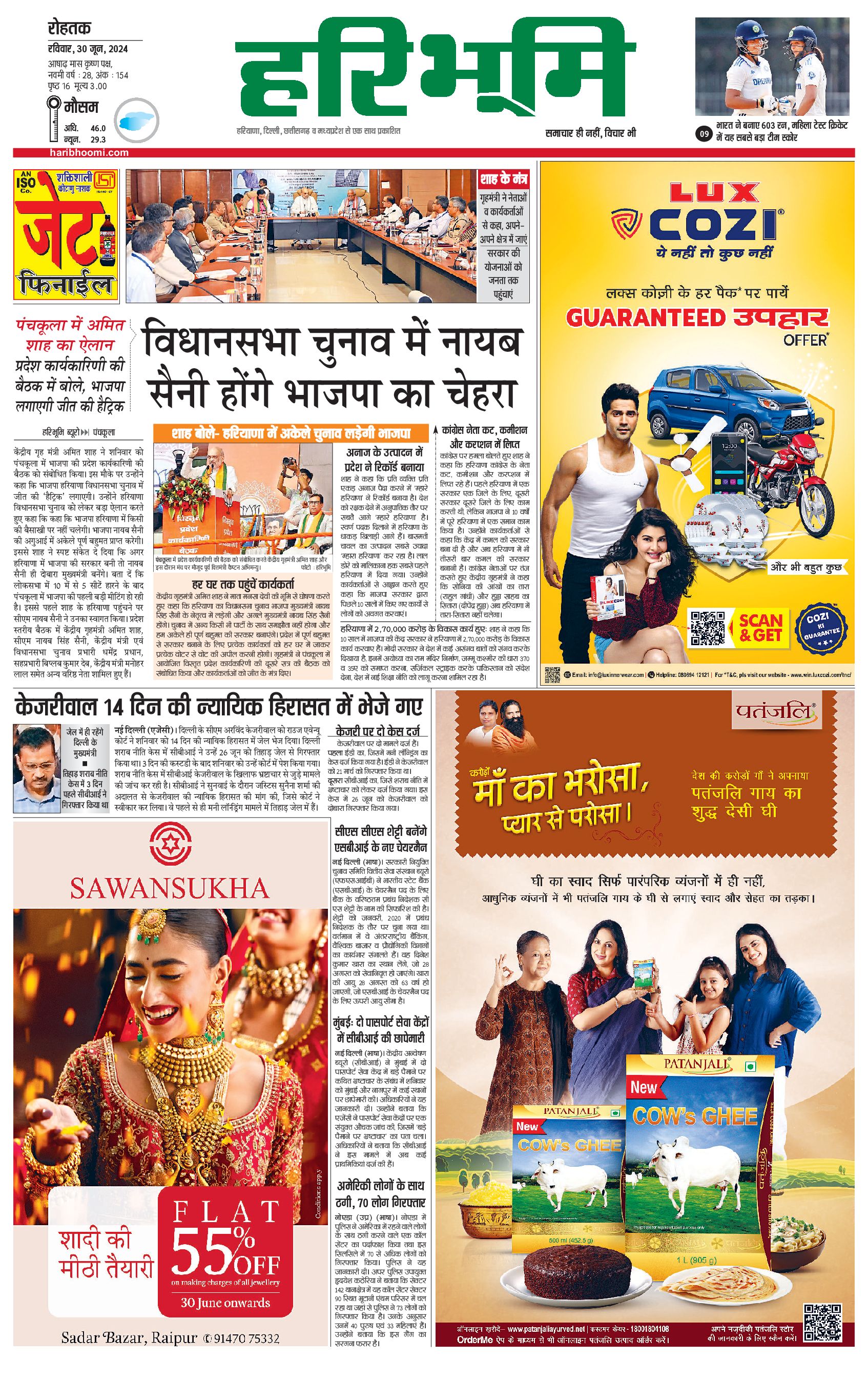 रोहतक मुख्य संस्करण - 30 Jun 2024 - - Page 1