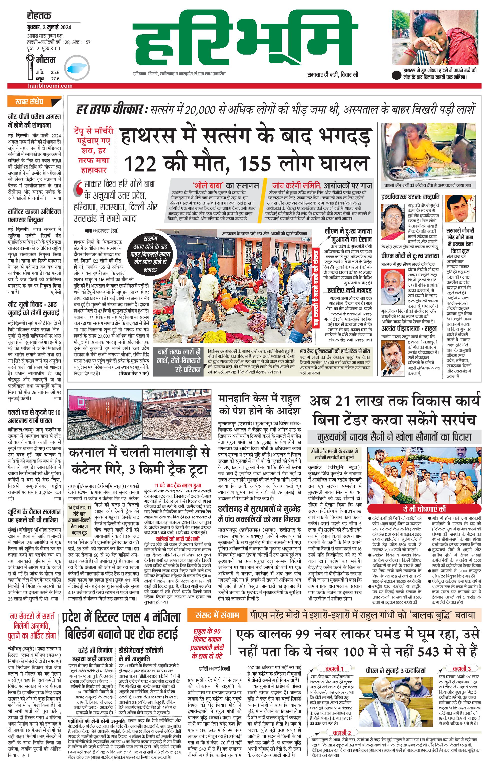 रोहतक मुख्य संस्करण - 03 Jul 2024 - - Page 1