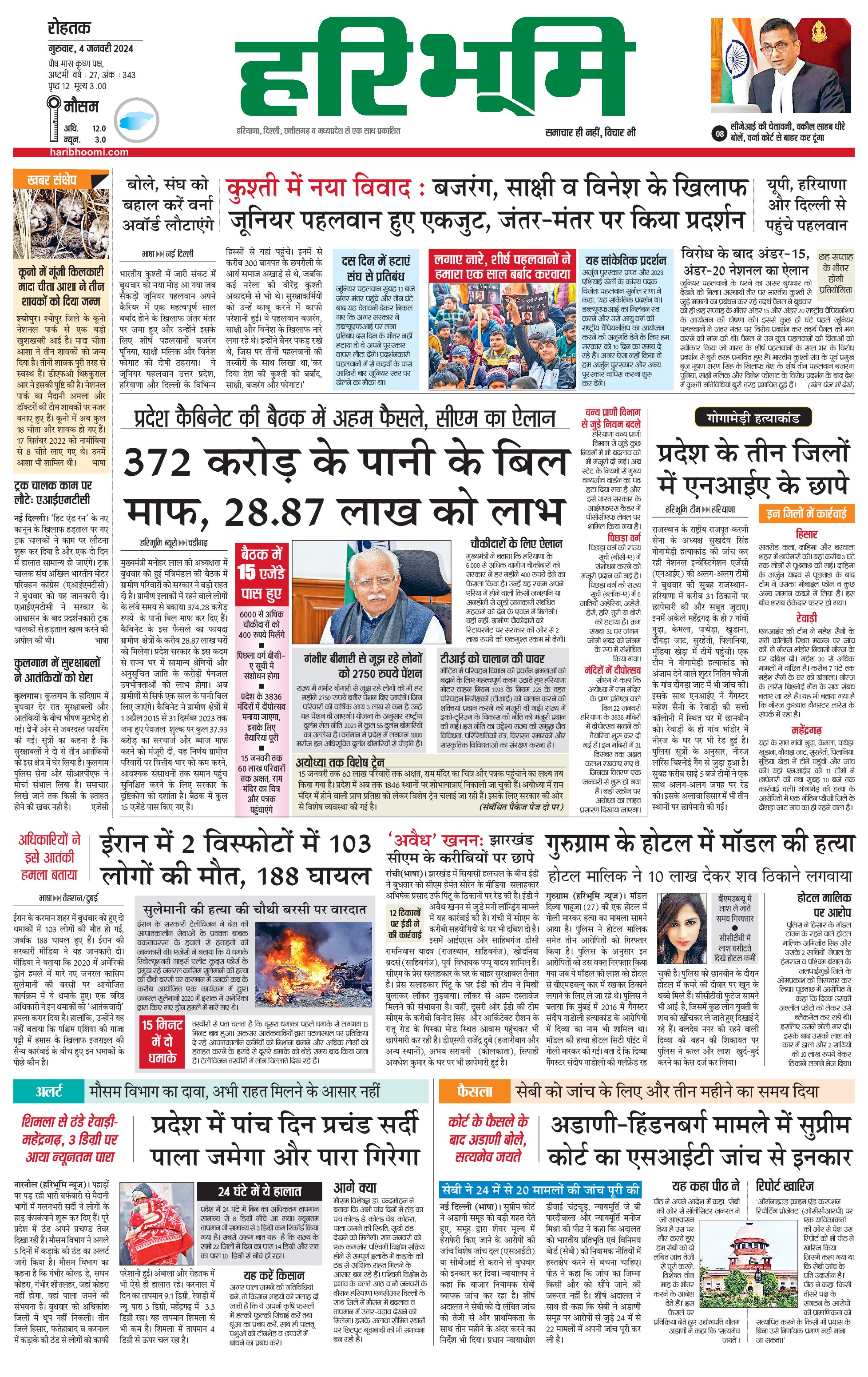 रोहतक मुख्य संस्करण - 04 Jan 2024 - - Page 1