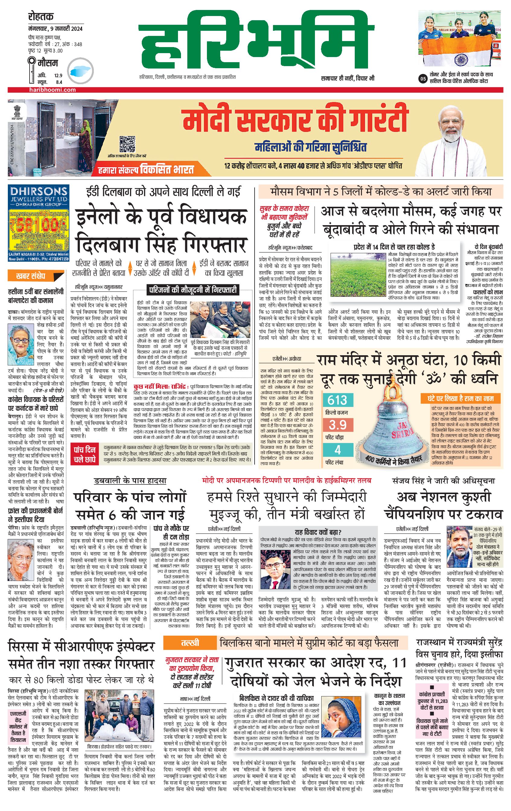 रोहतक मुख्य संस्करण - 09 Jan 2024 - - Page 1