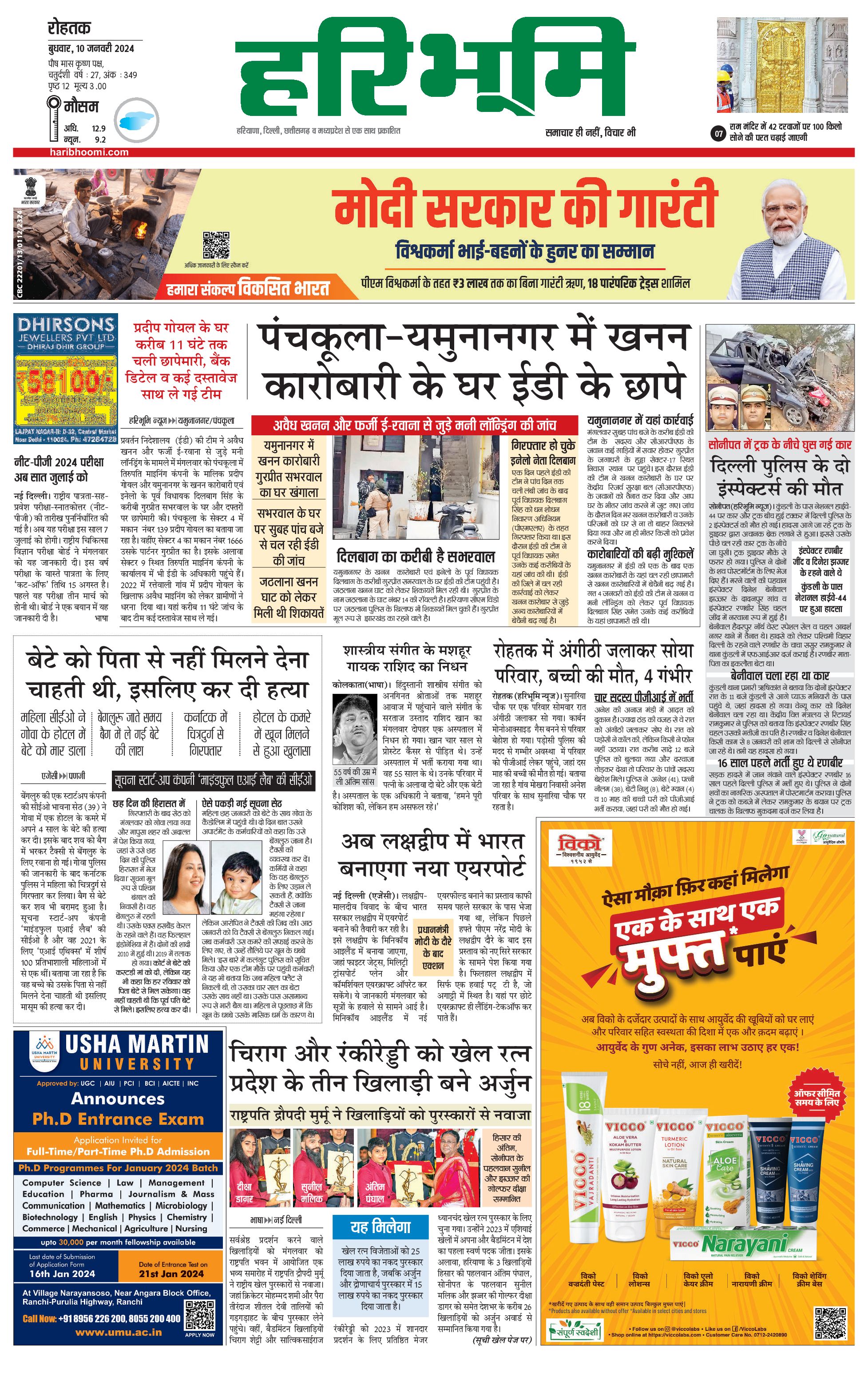 रोहतक मुख्य संस्करण - 10 Jan 2024 - - Page 1