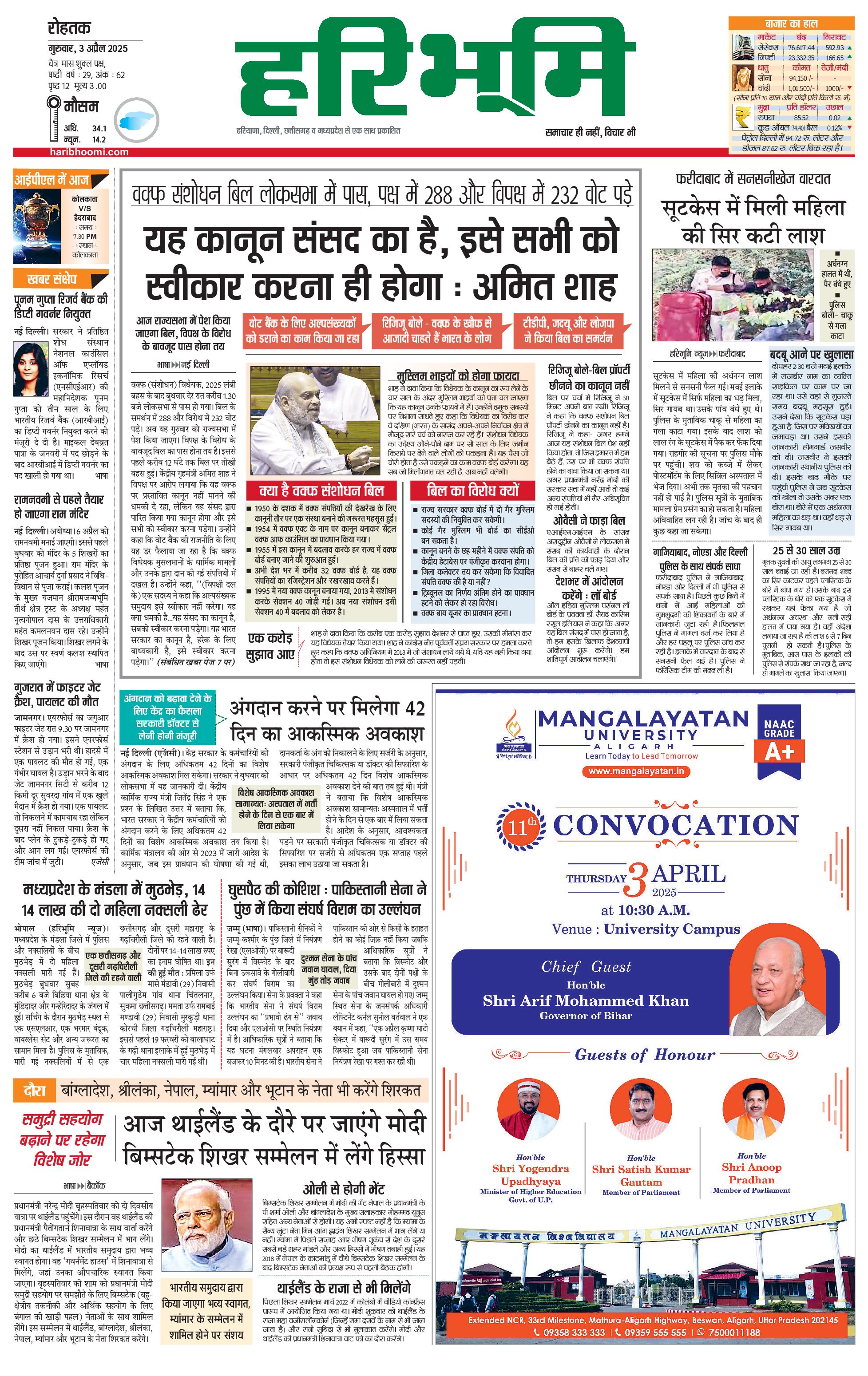 रोहतक मुख्य संस्करण - 03 Apr 2025 - - Page 1