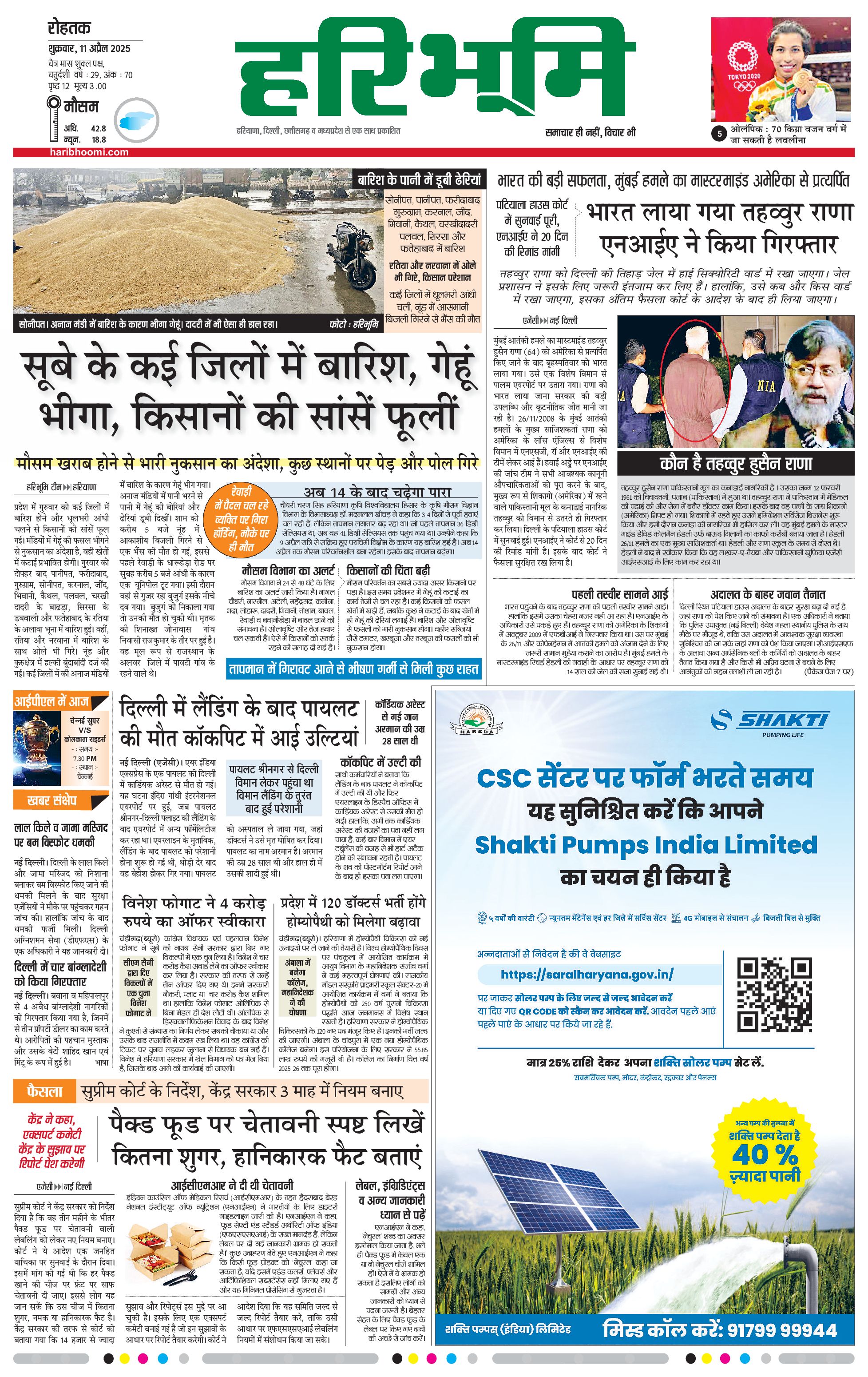 रोहतक मुख्य संस्करण - 11 Apr 2025 - - Page 1
