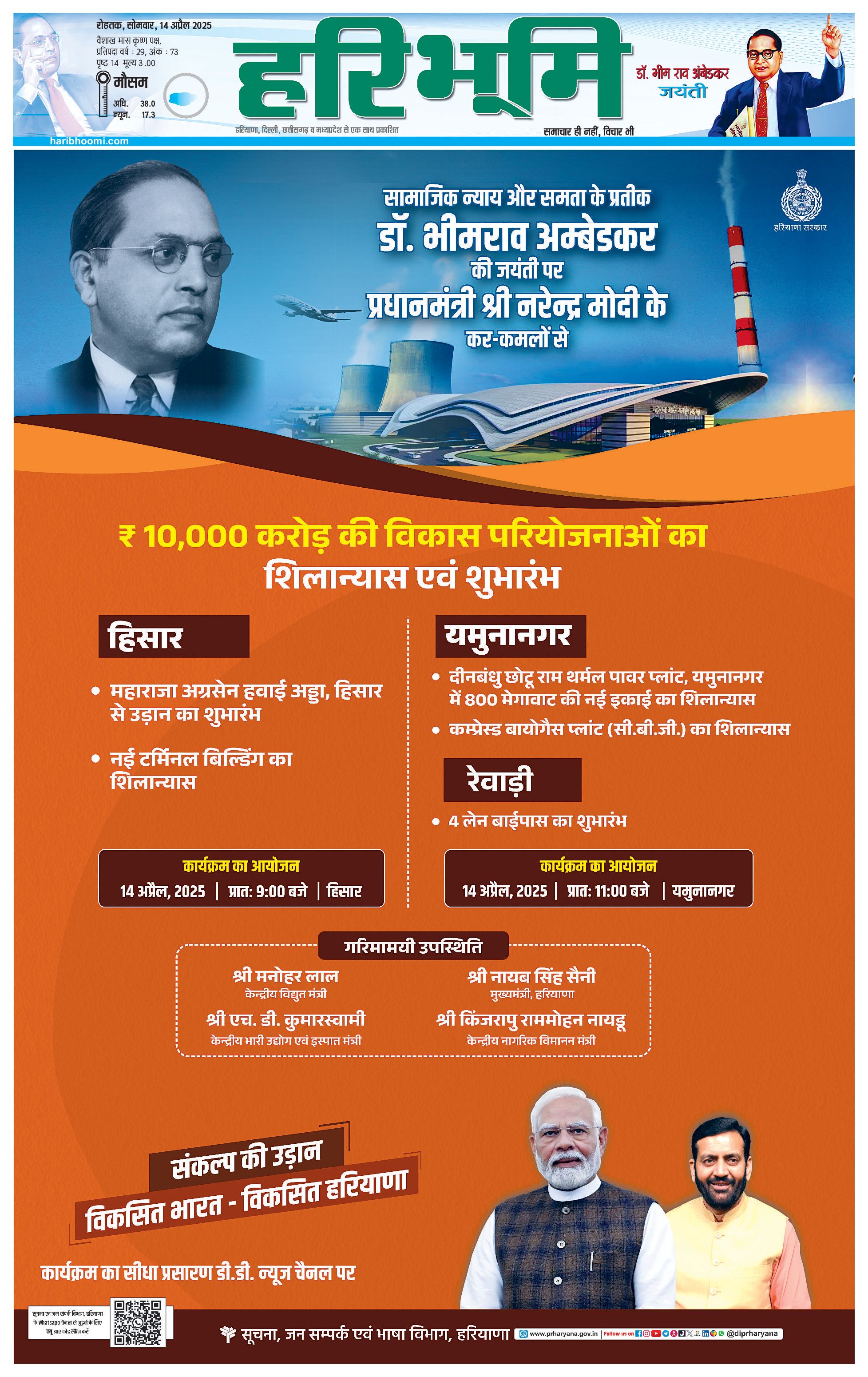 रोहतक मुख्य संस्करण - 14 Apr 2025 - - Page 1