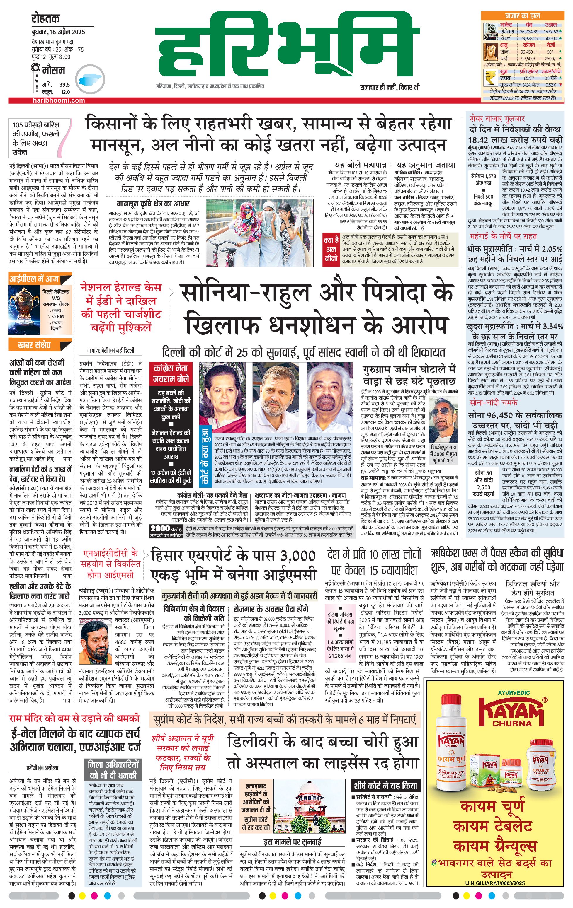 रोहतक मुख्य संस्करण - 16 Apr 2025 - - Page 1