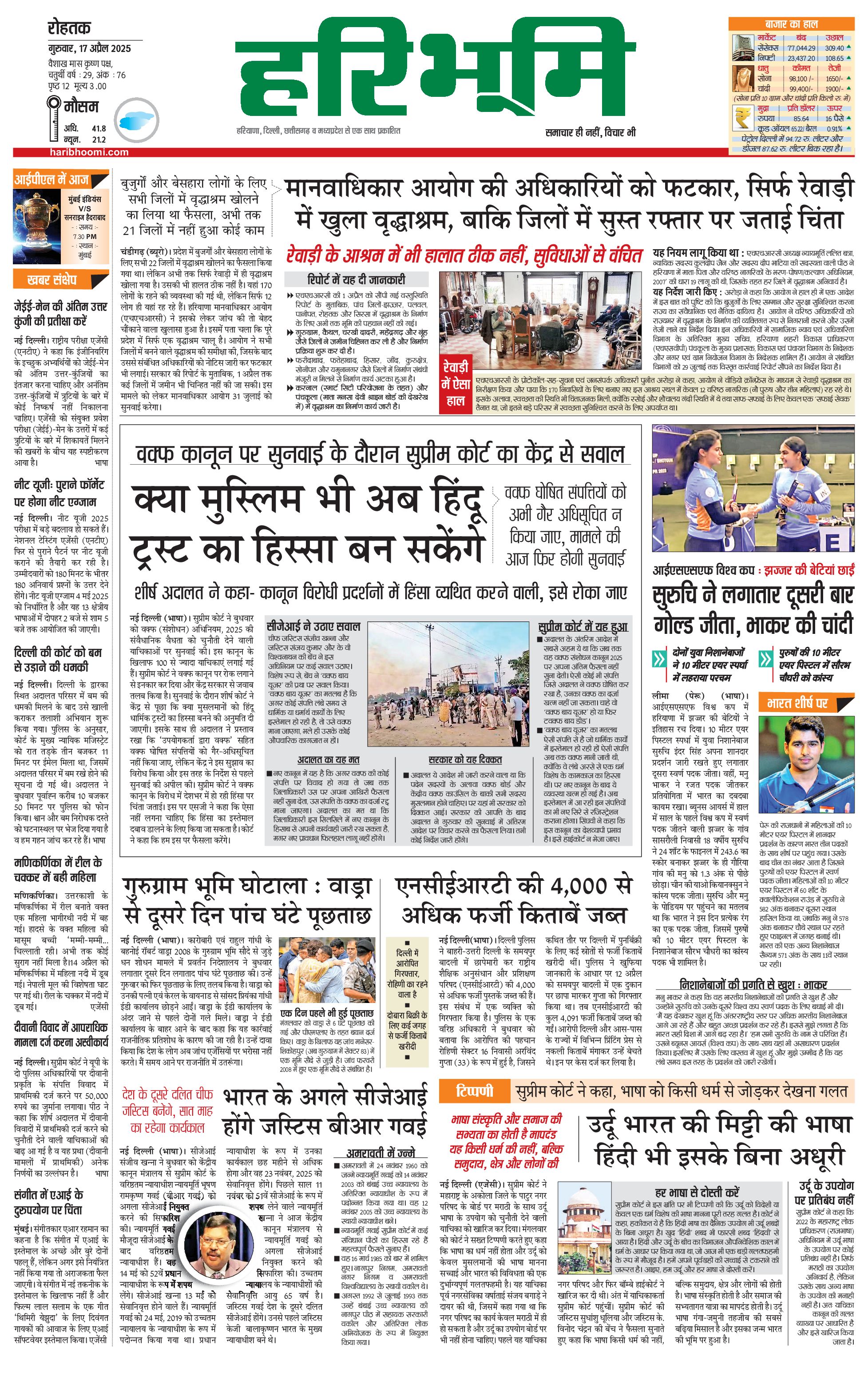 रोहतक मुख्य संस्करण - 17 Apr 2025 - - Page 1