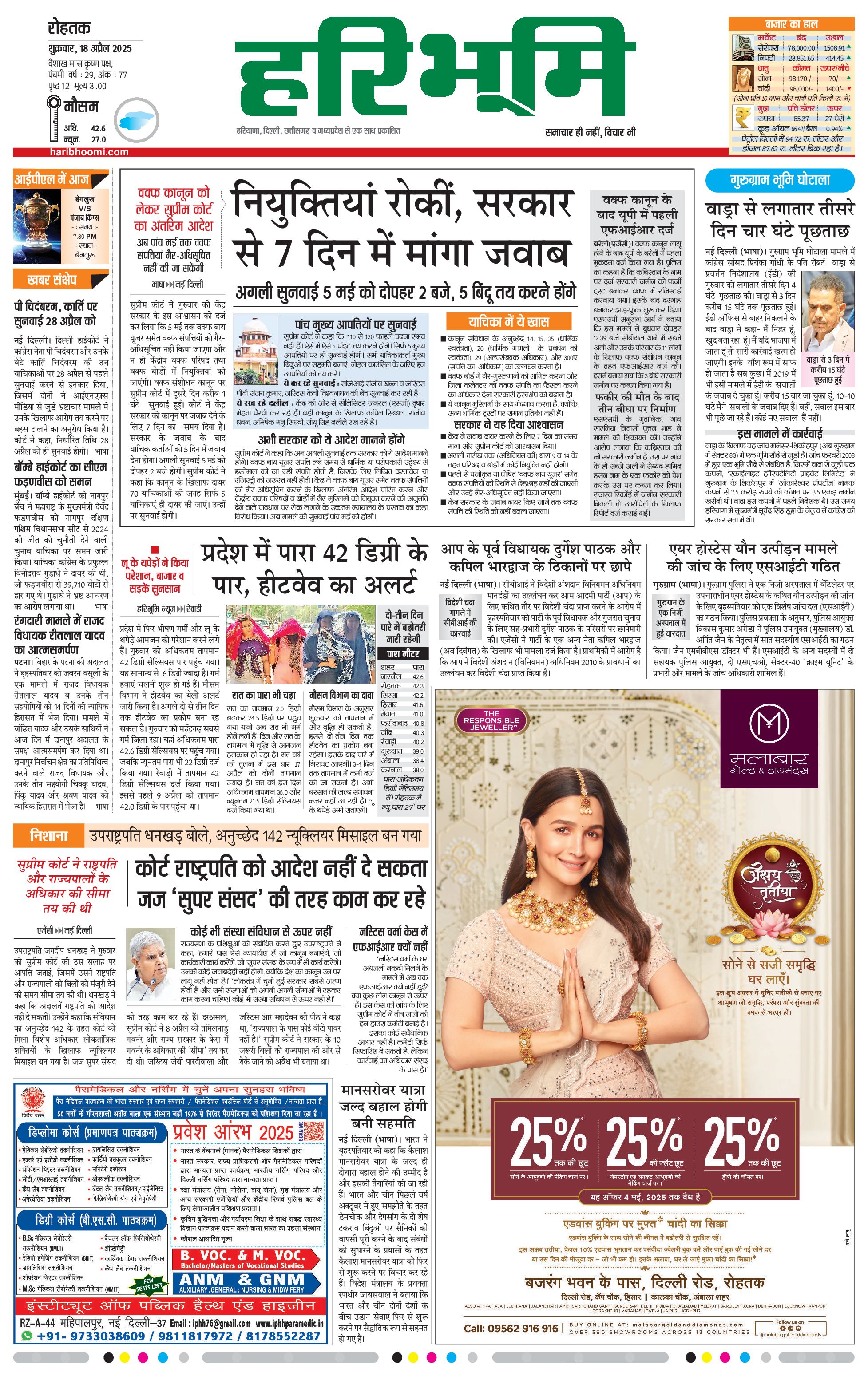 रोहतक मुख्य संस्करण - 18 Apr 2025 - - Page 1