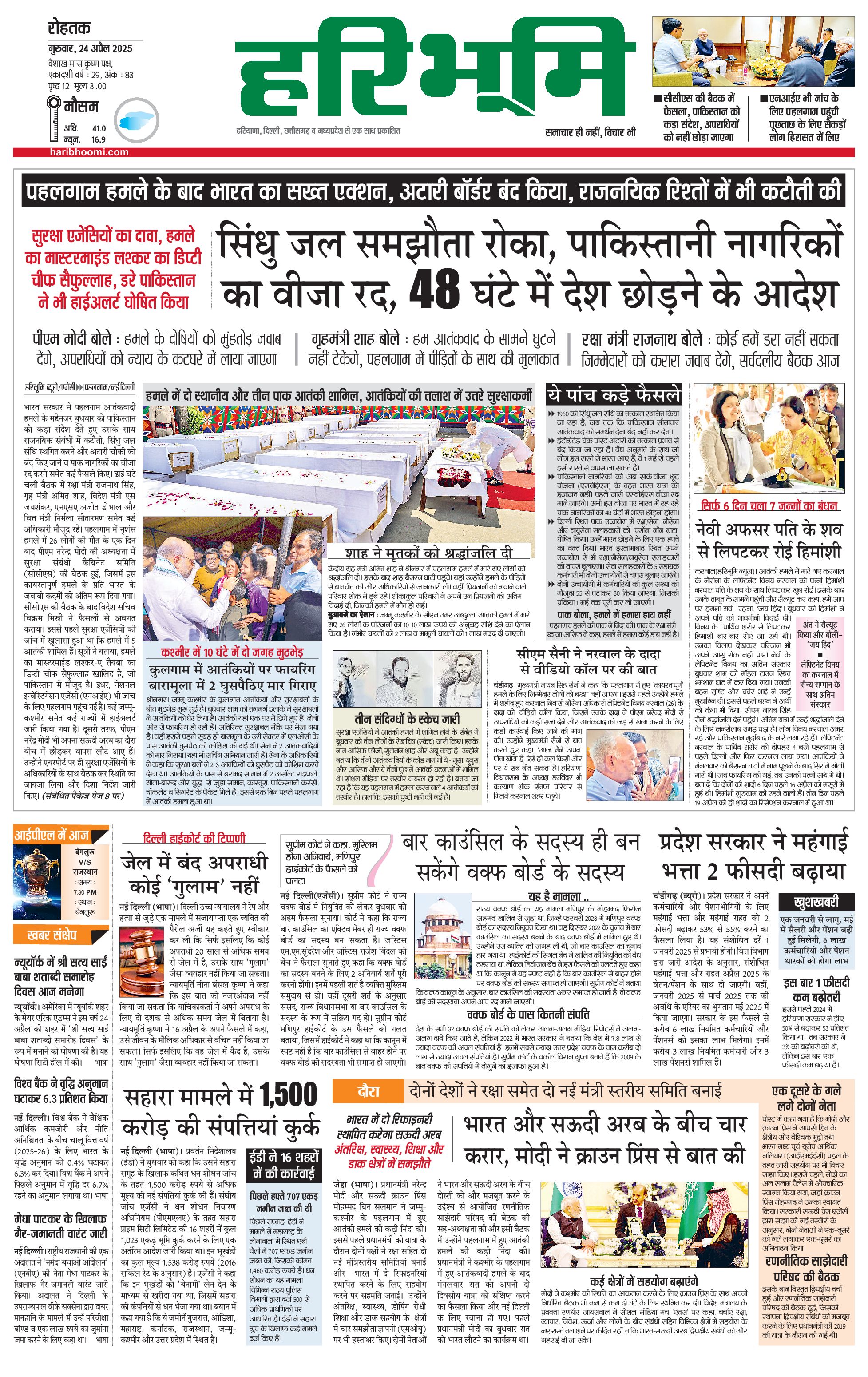 रोहतक मुख्य संस्करण - 24 Apr 2025 - - Page 1