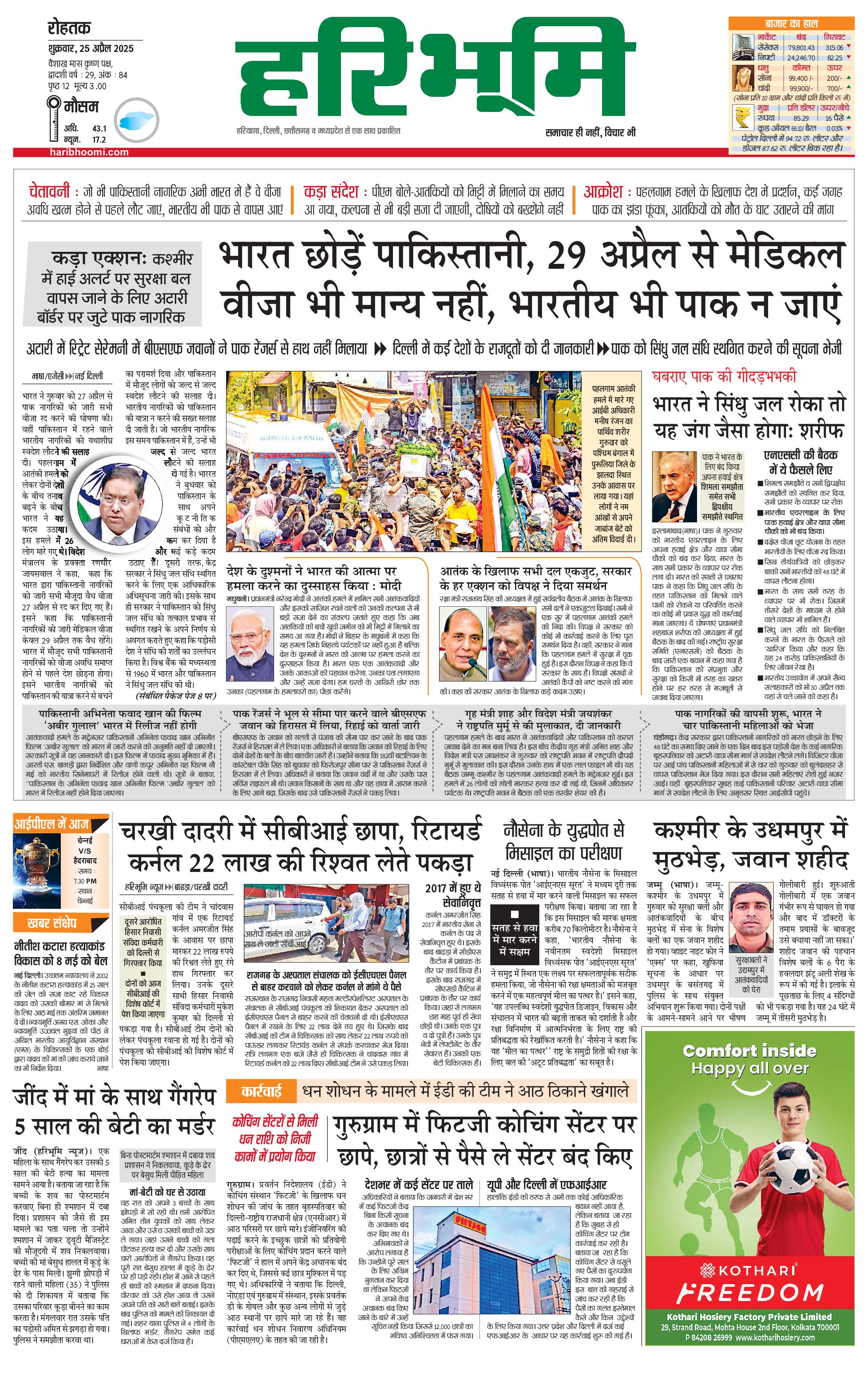 रोहतक मुख्य संस्करण - 25 Apr 2025 - - Page 1