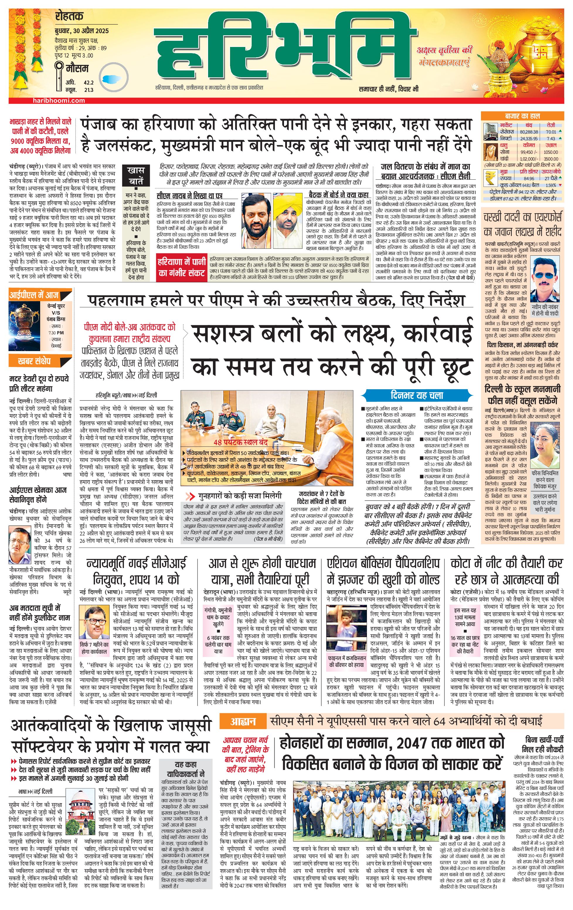 रोहतक मुख्य संस्करण - 30 Apr 2025 - - Page 1