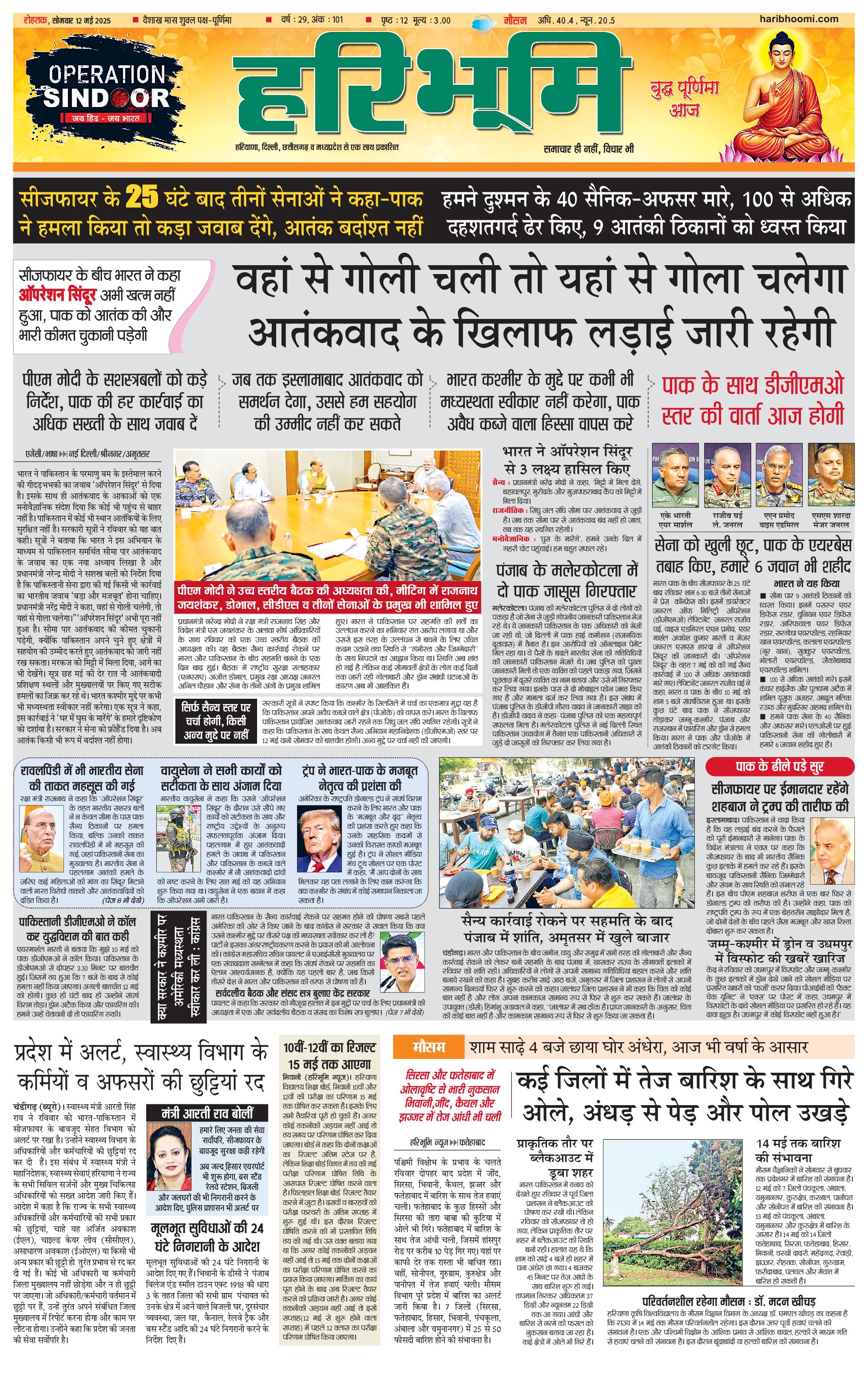 रोहतक मुख्य संस्करण - 12 May 2025 - - Page 1