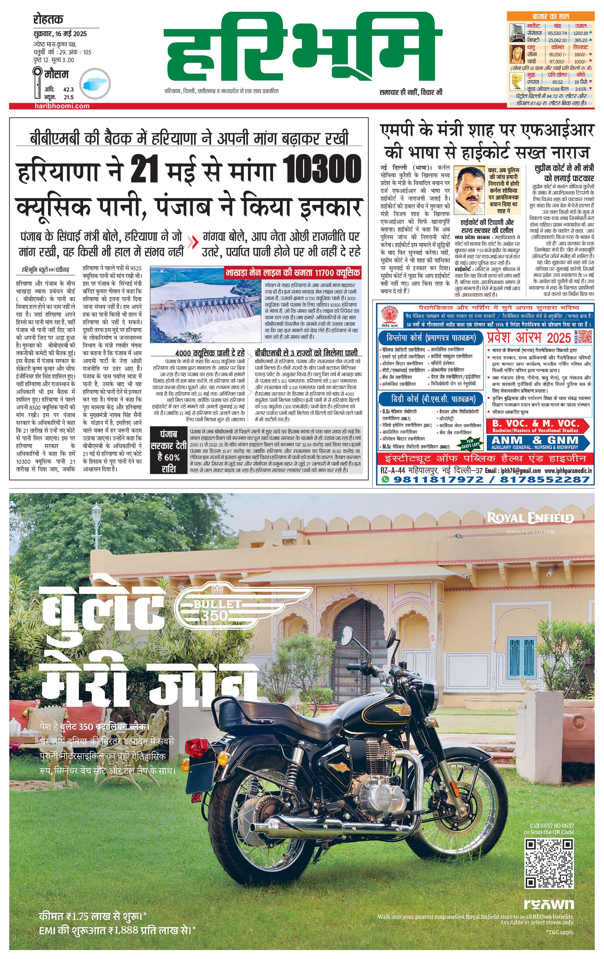 रोहतक मुख्य संस्करण - 16 May 2025 - - Page 1