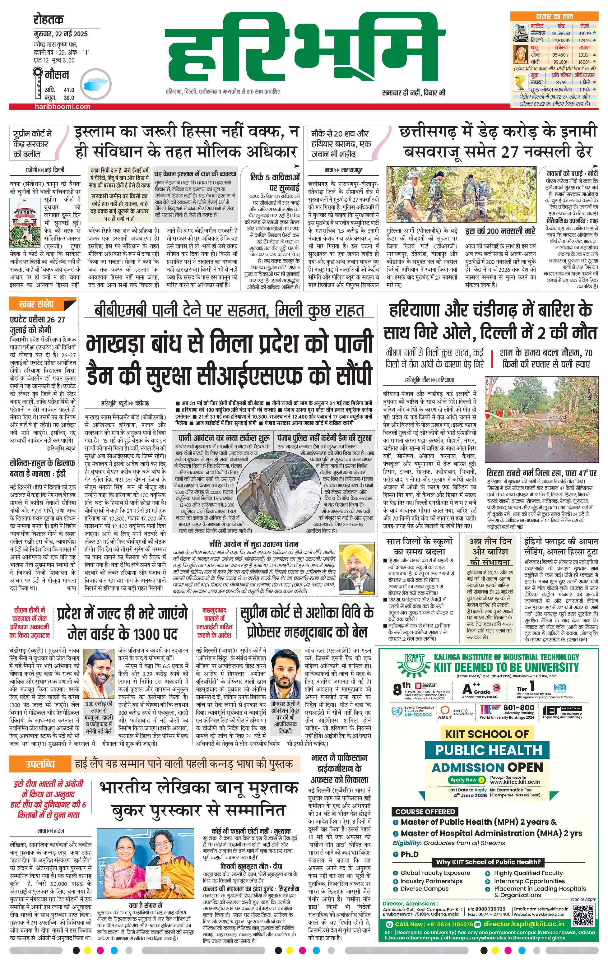 रोहतक मुख्य संस्करण - 22 May 2025 - - Page 1