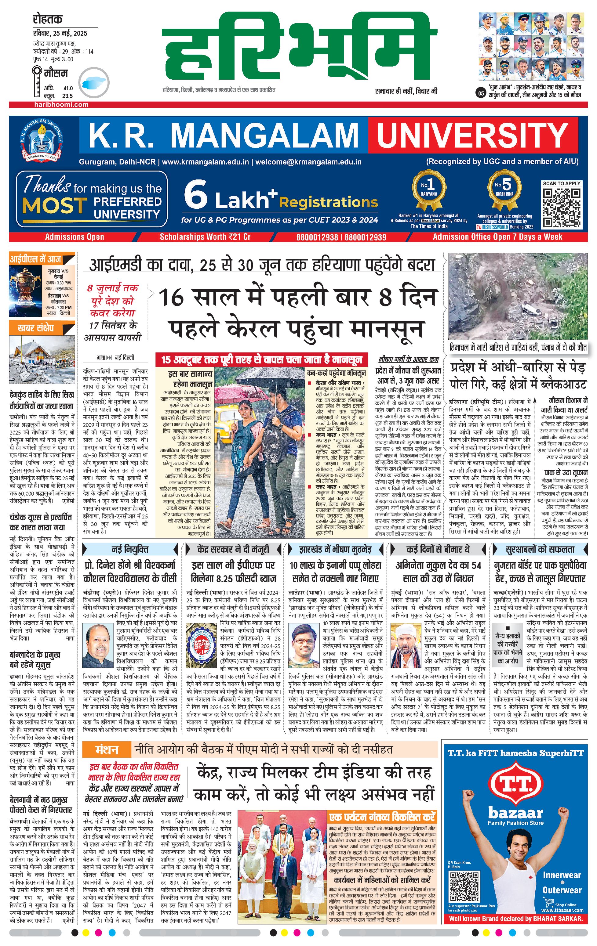रोहतक मुख्य संस्करण - 25 May 2025 - - Page 1