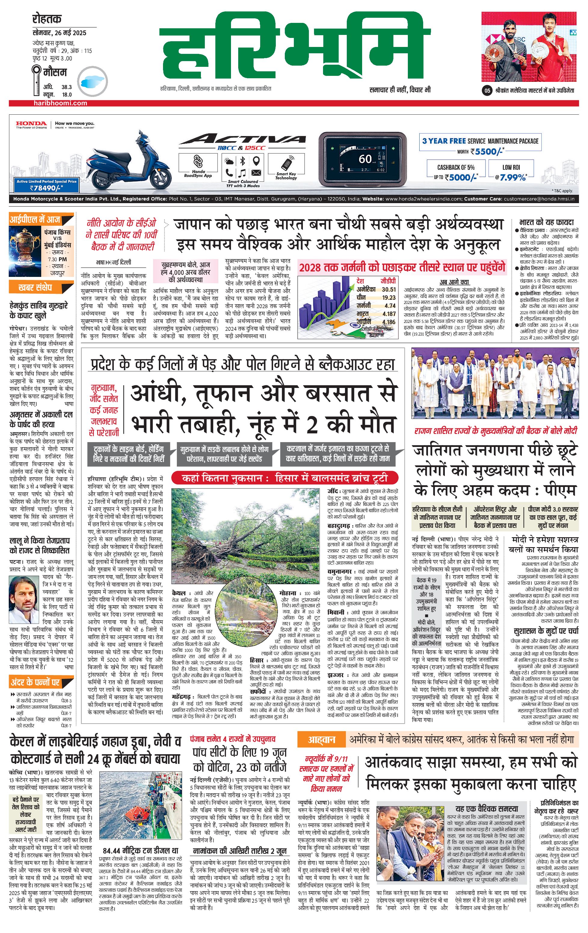 रोहतक मुख्य संस्करण - 26 May 2025 - - Page 1