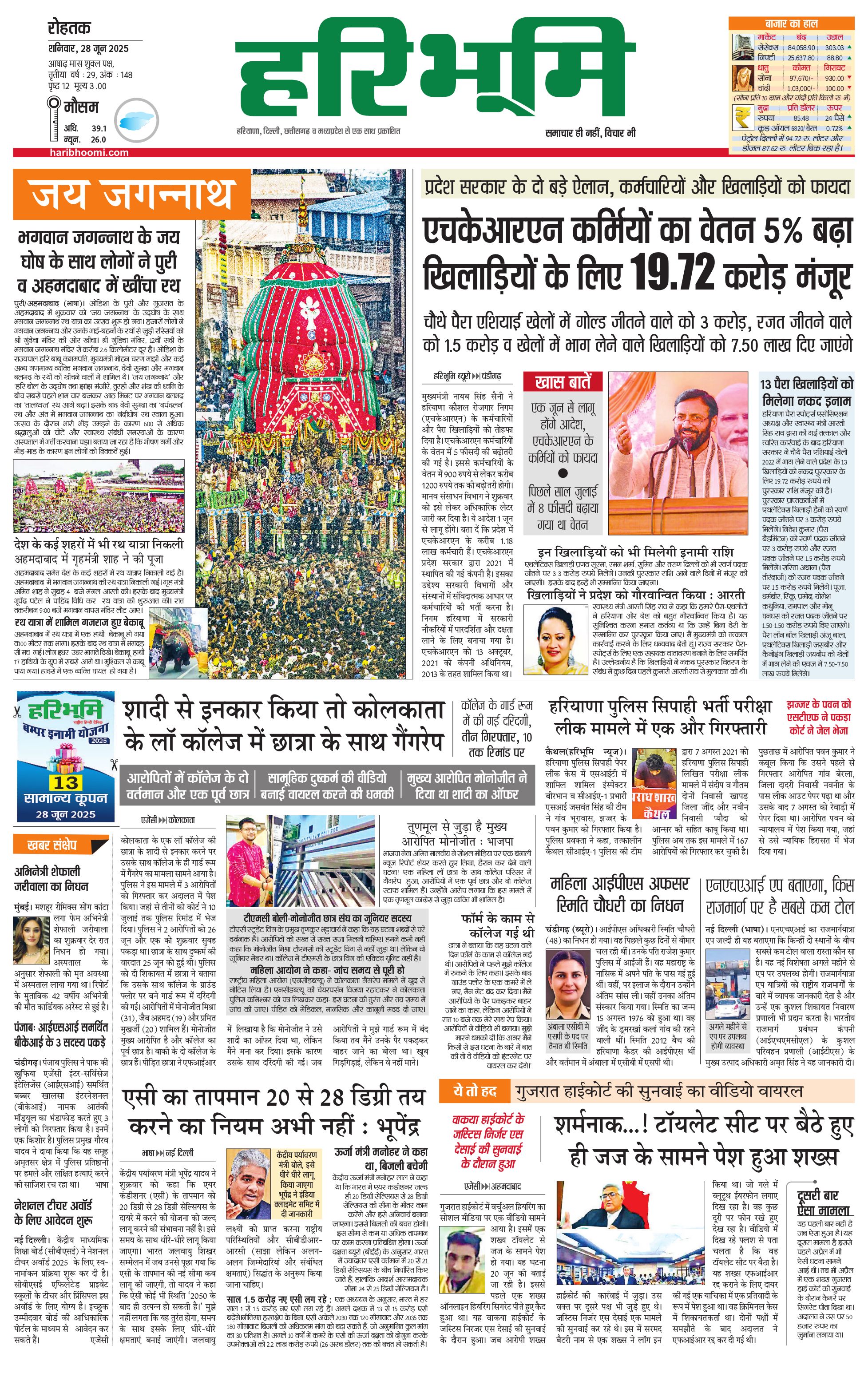 रोहतक मुख्य संस्करण - 28 Jun 2025 - - Page 1