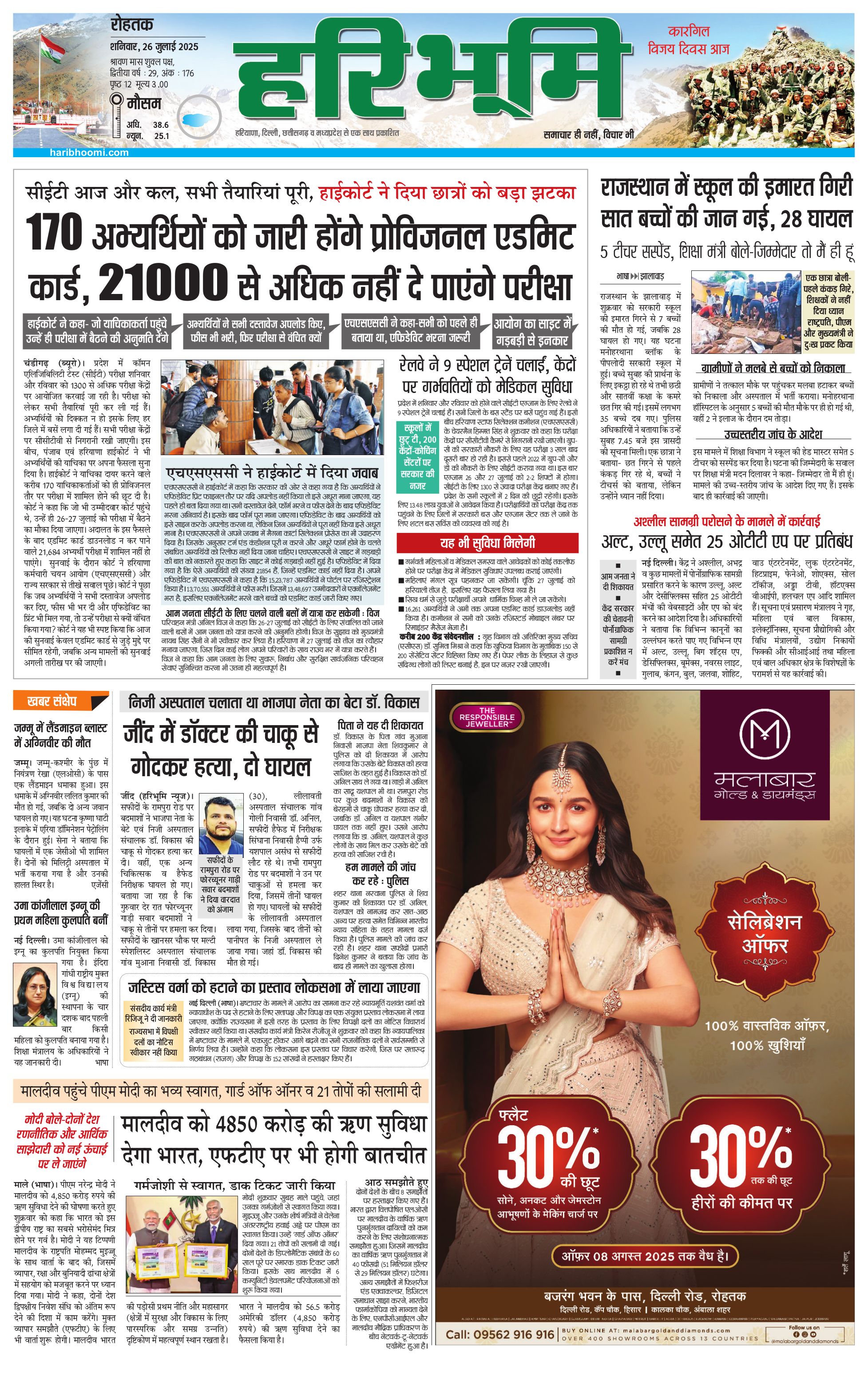 रोहतक मुख्य संस्करण - 26 Jul 2025 - - Page 1
