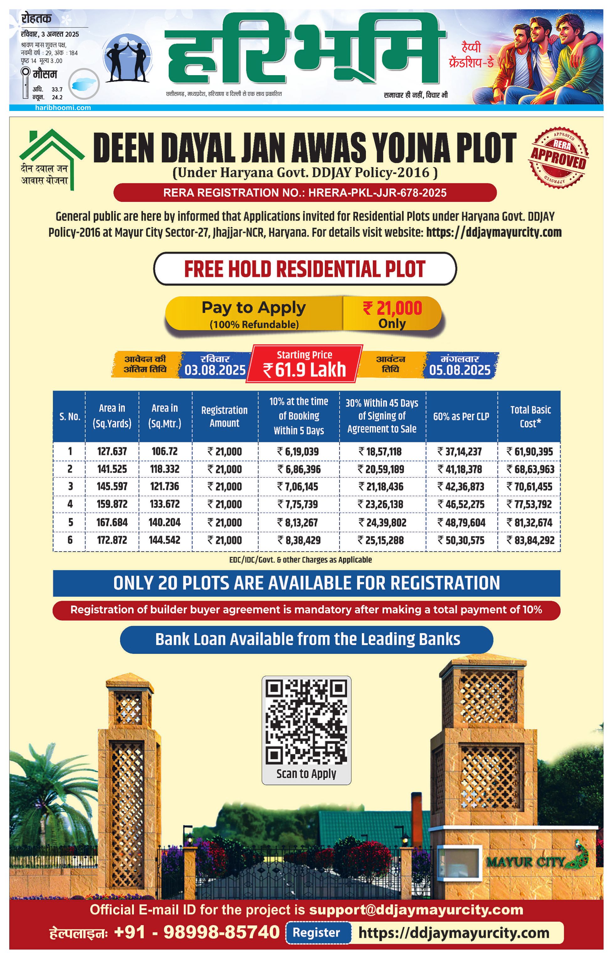 रोहतक मुख्य संस्करण - 03 Aug 2025 - - Page 1