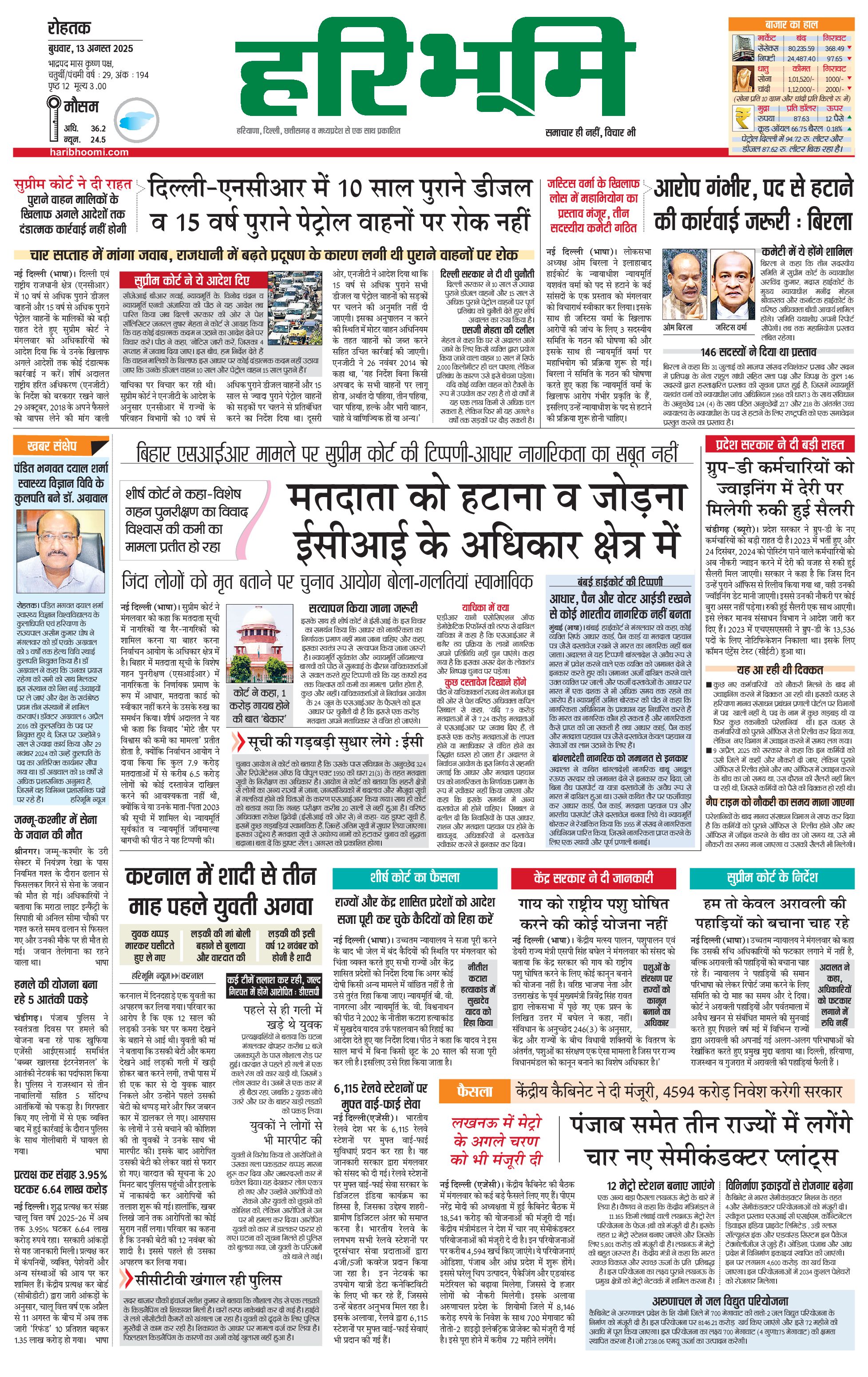 रोहतक मुख्य संस्करण - 13 Aug 2025 - - Page 1