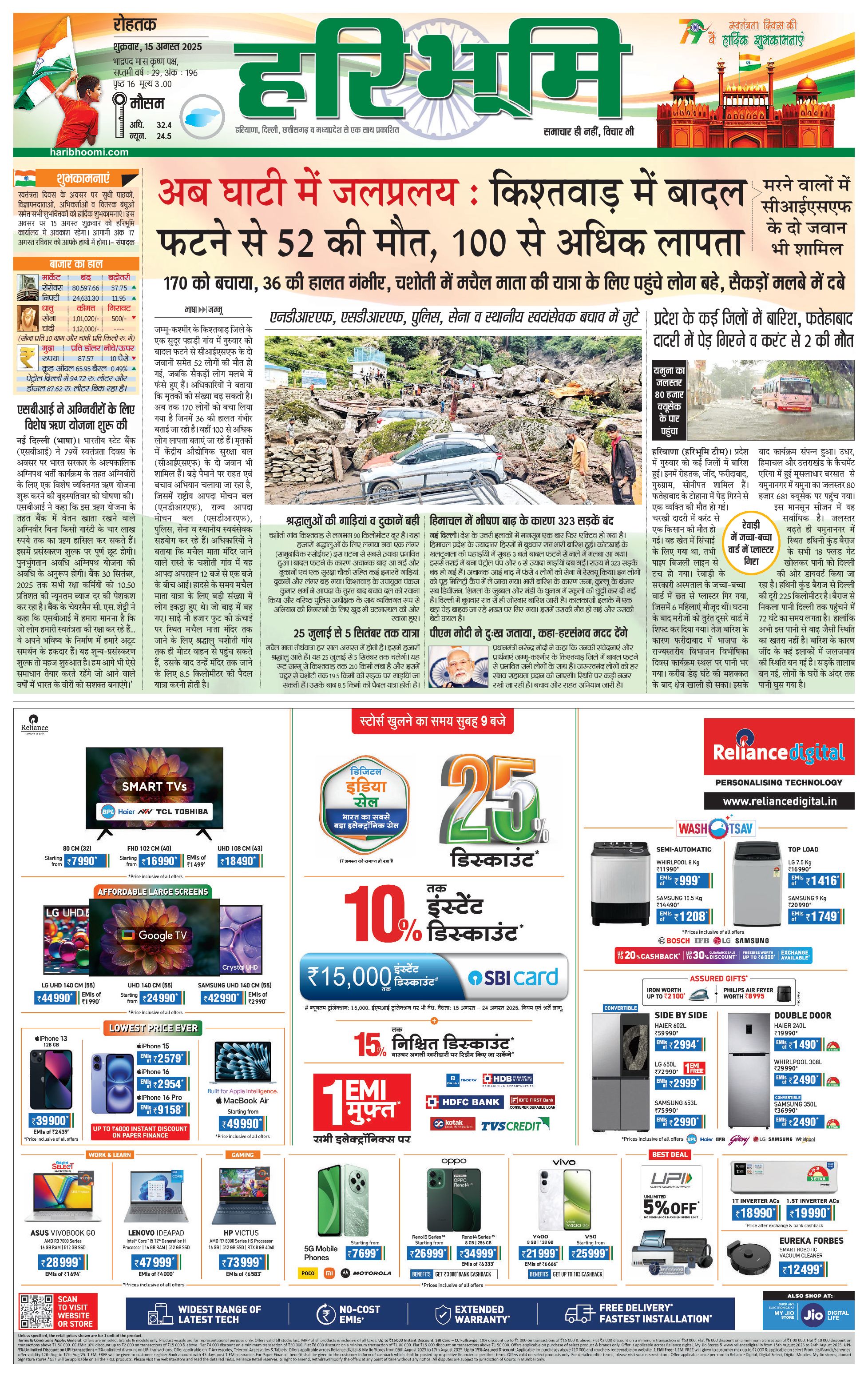 रोहतक मुख्य संस्करण - 15 Aug 2025 - - Page 1