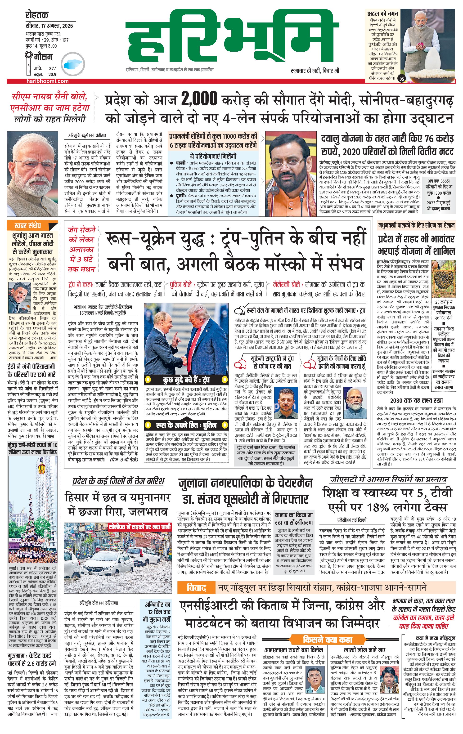 रोहतक मुख्य संस्करण - 17 Aug 2025 - - Page 1