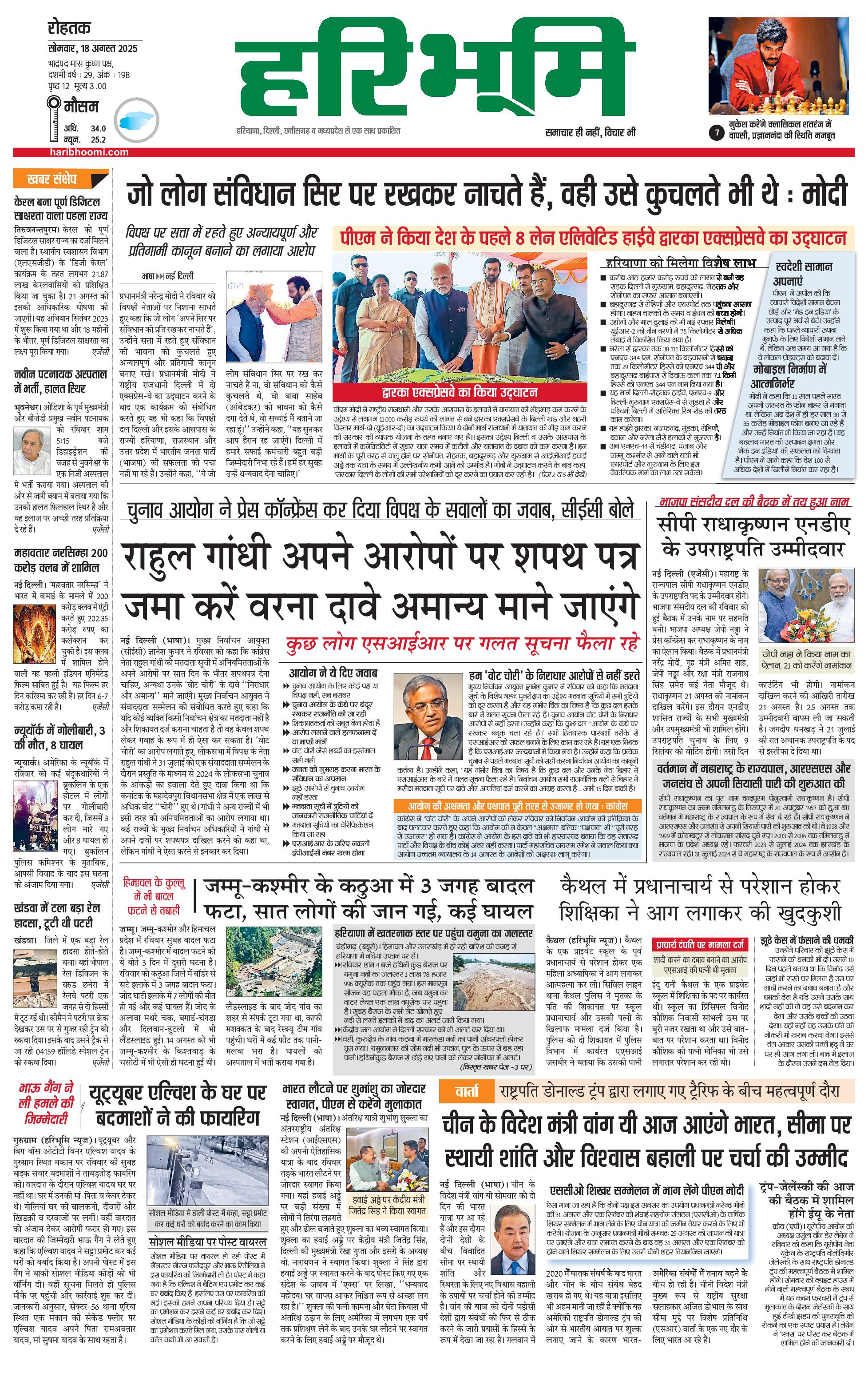 रोहतक मुख्य संस्करण - 18 Aug 2025 - - Page 1