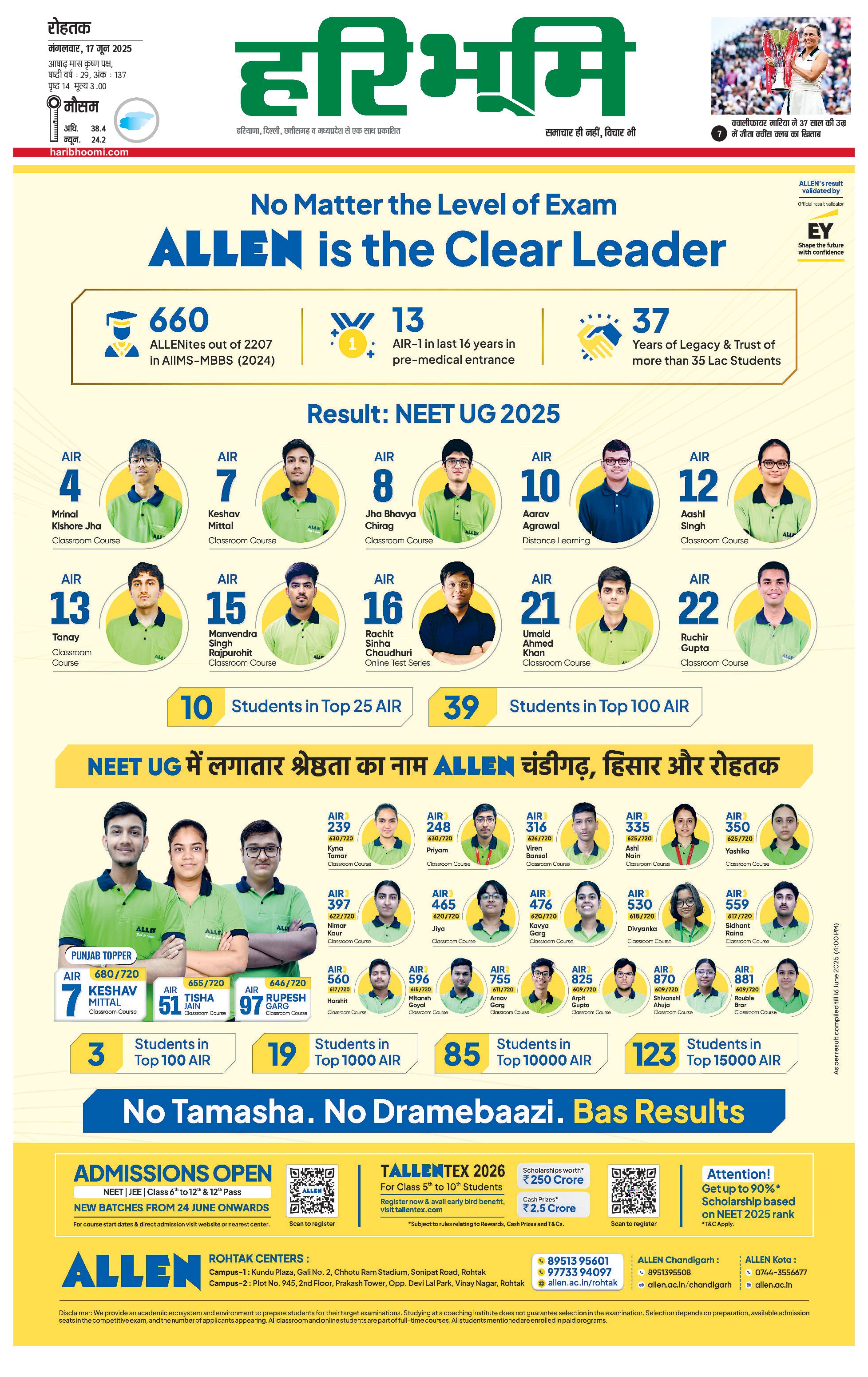 रोहतक मुख्य संस्करण - 17 Jun 2025 - - Page 1