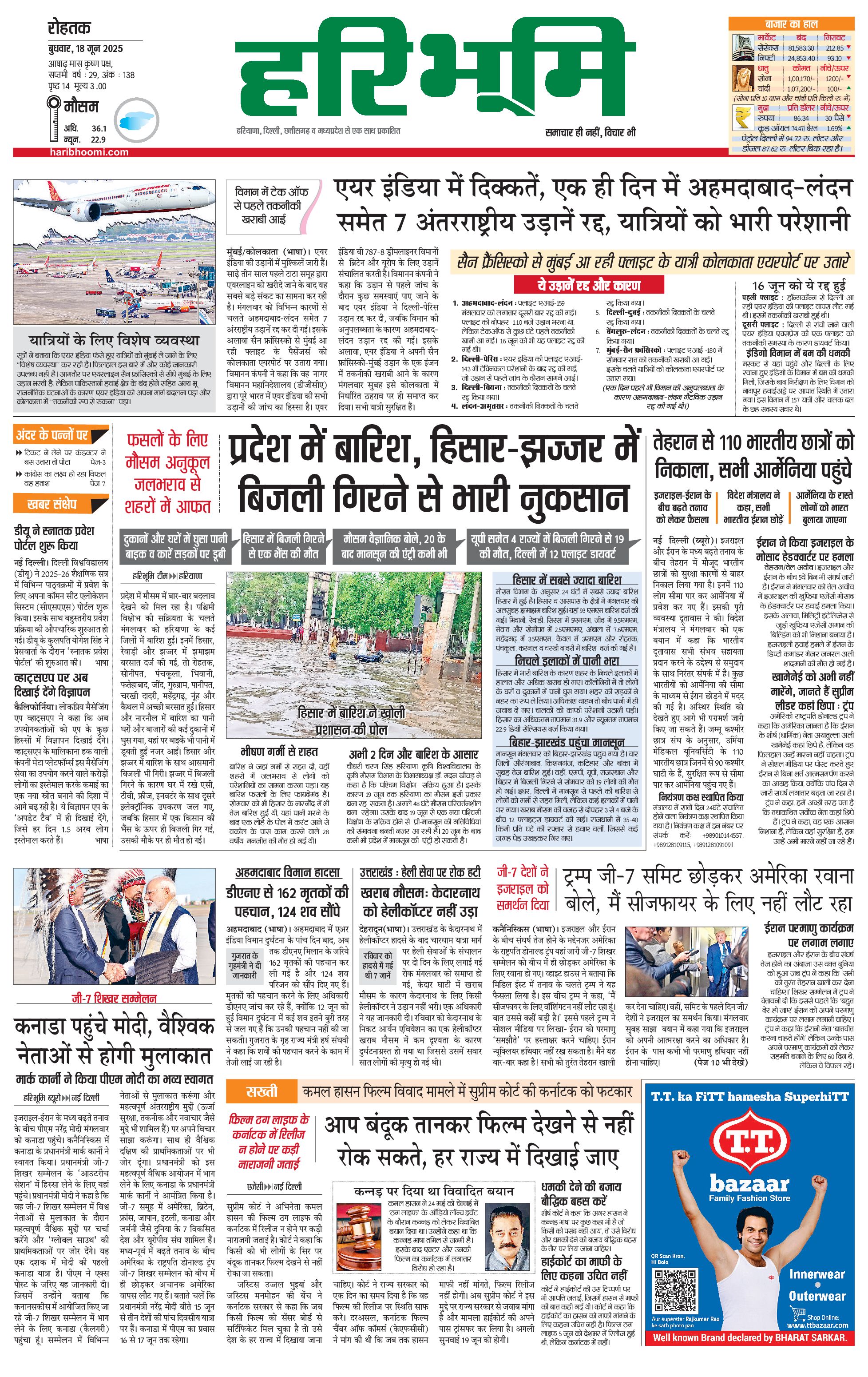 रोहतक मुख्य संस्करण - 18 Jun 2025 - - Page 1