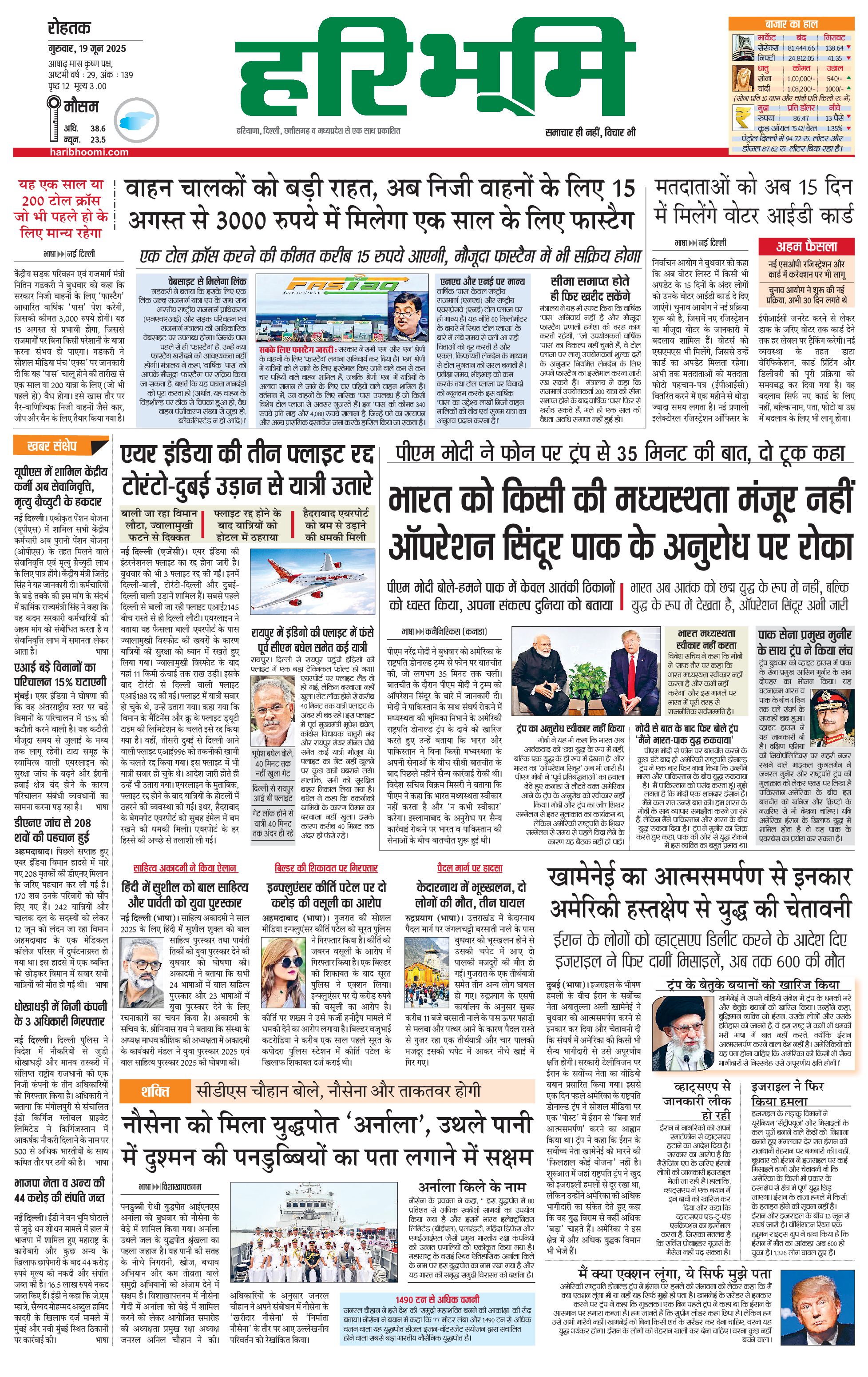 रोहतक मुख्य संस्करण - 19 Jun 2025 - - Page 1