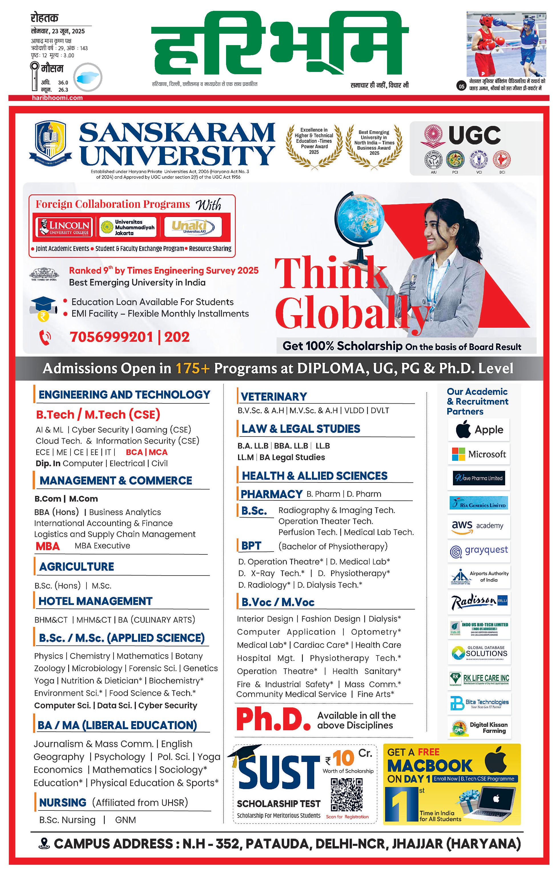 रोहतक मुख्य संस्करण - 23 Jun 2025 - - Page 1