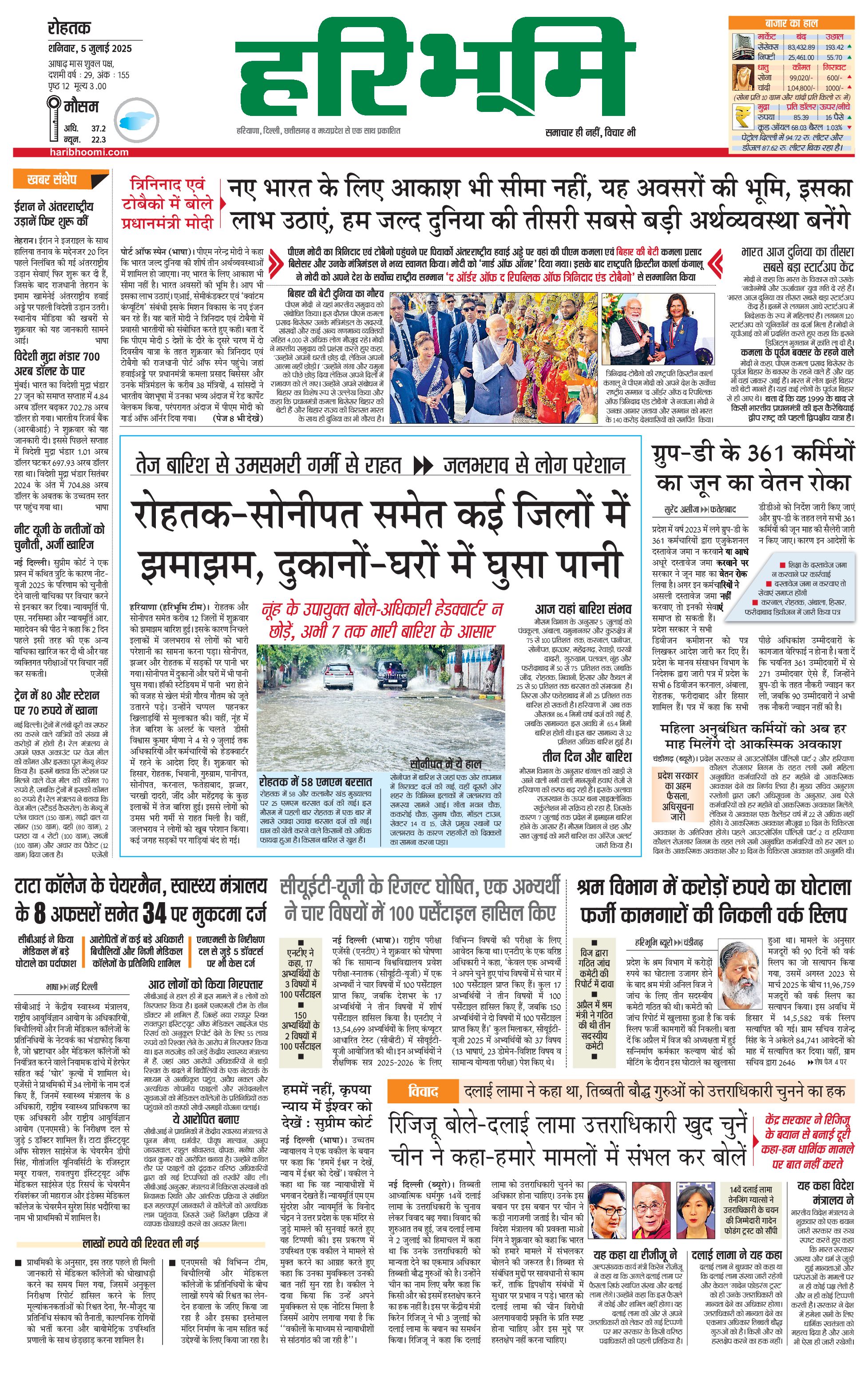रोहतक मुख्य संस्करण - 05 Jul 2025 - - Page 1