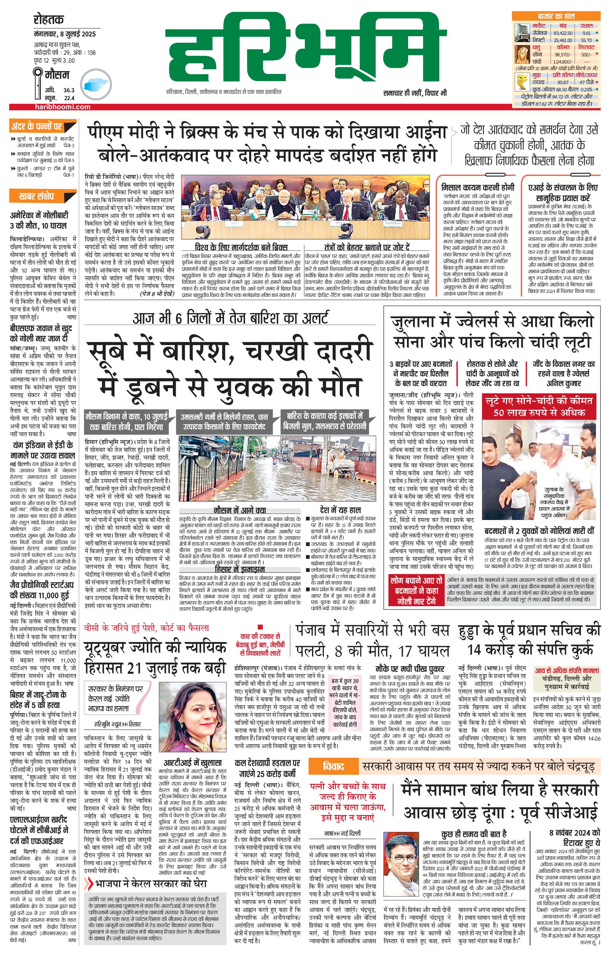 रोहतक मुख्य संस्करण - 08 Jul 2025 - - Page 1