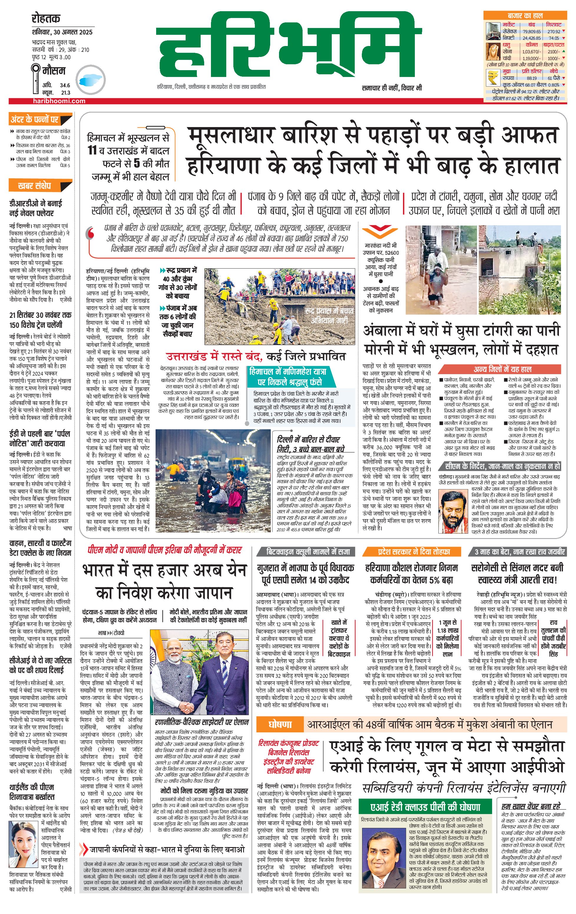 रोहतक मुख्य संस्करण - 30 Aug 2025 - - Page 1