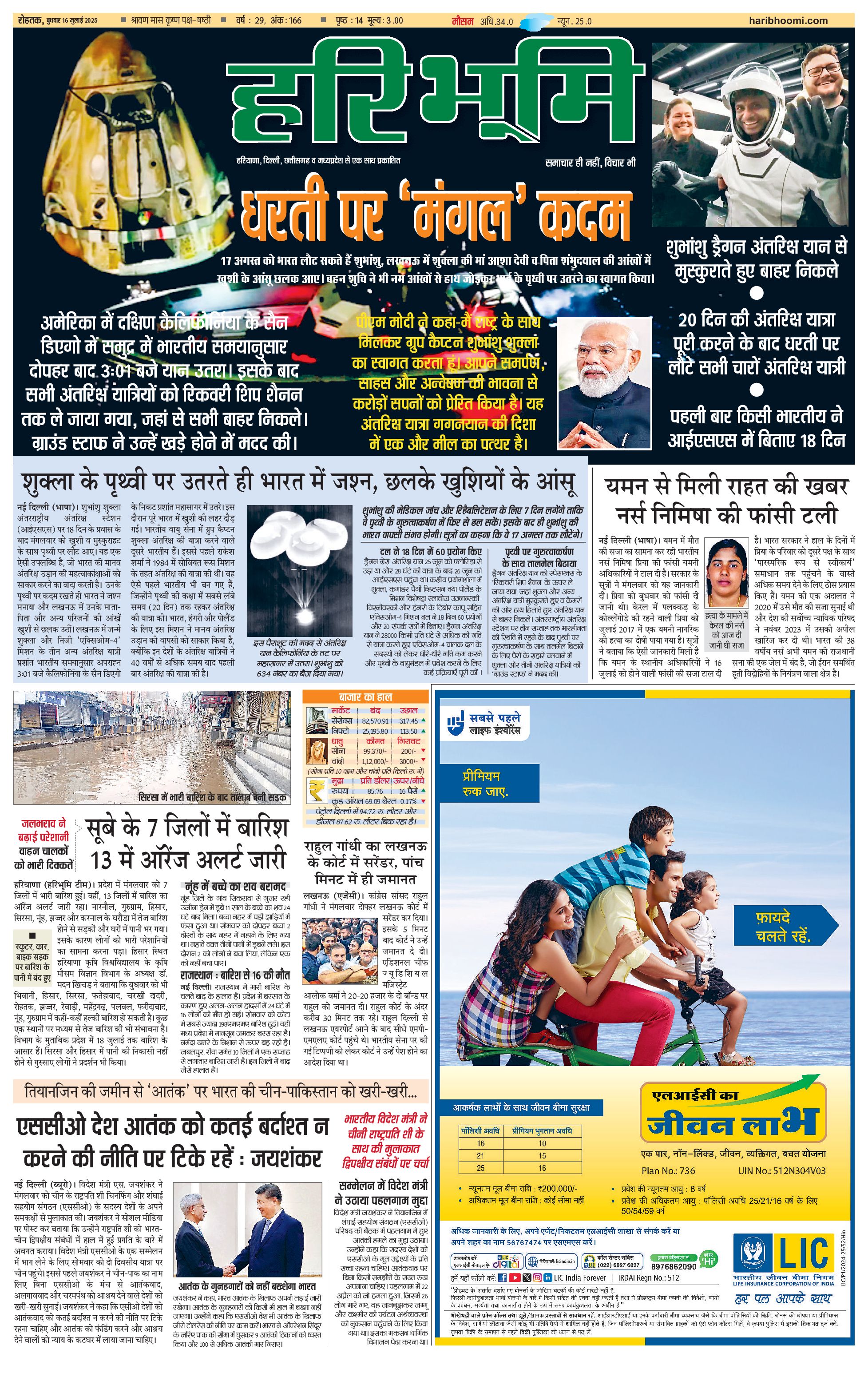 रोहतक मुख्य संस्करण - 16 Jul 2025 - - Page 1