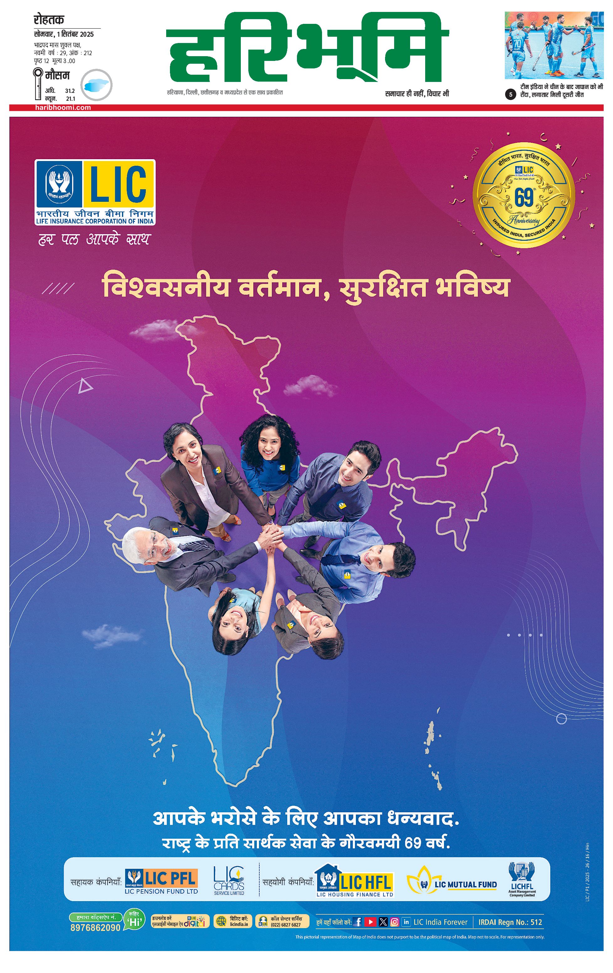 रोहतक मुख्य संस्करण - 01 Sep 2025 - - Page 1