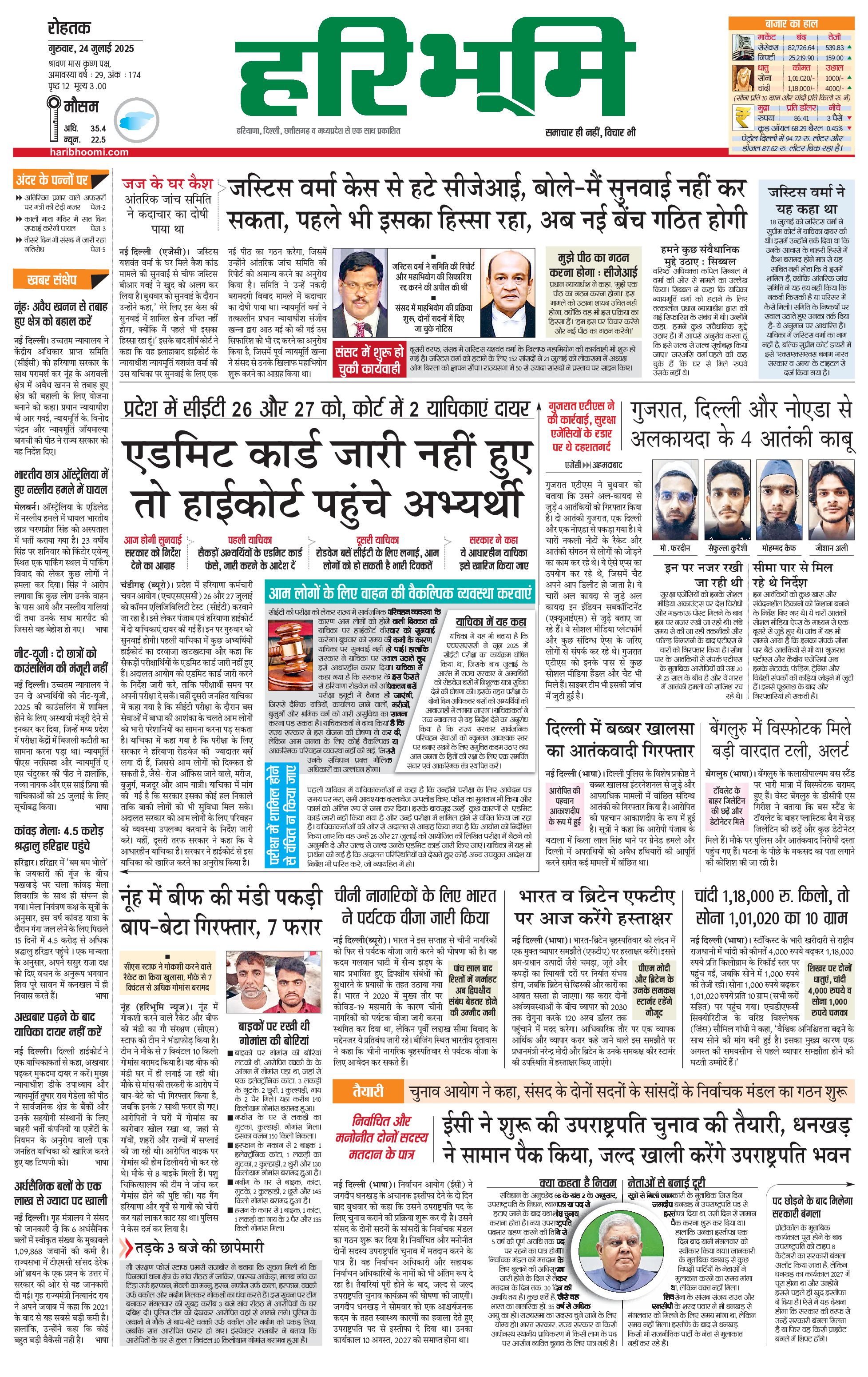 रोहतक मुख्य संस्करण - 24 Jul 2025 - - Page 1
