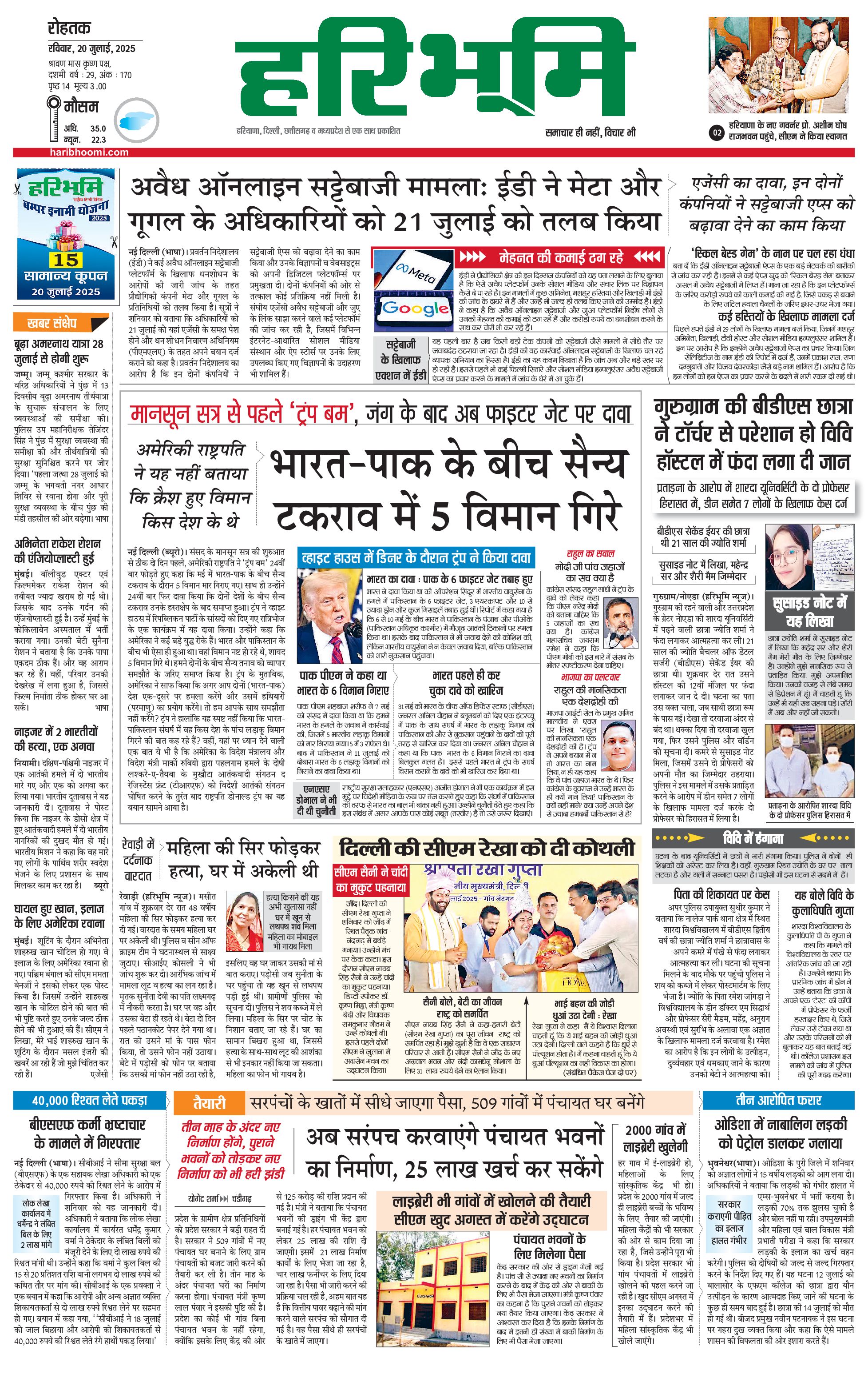 रोहतक मुख्य संस्करण - 20 Jul 2025 - - Page 1