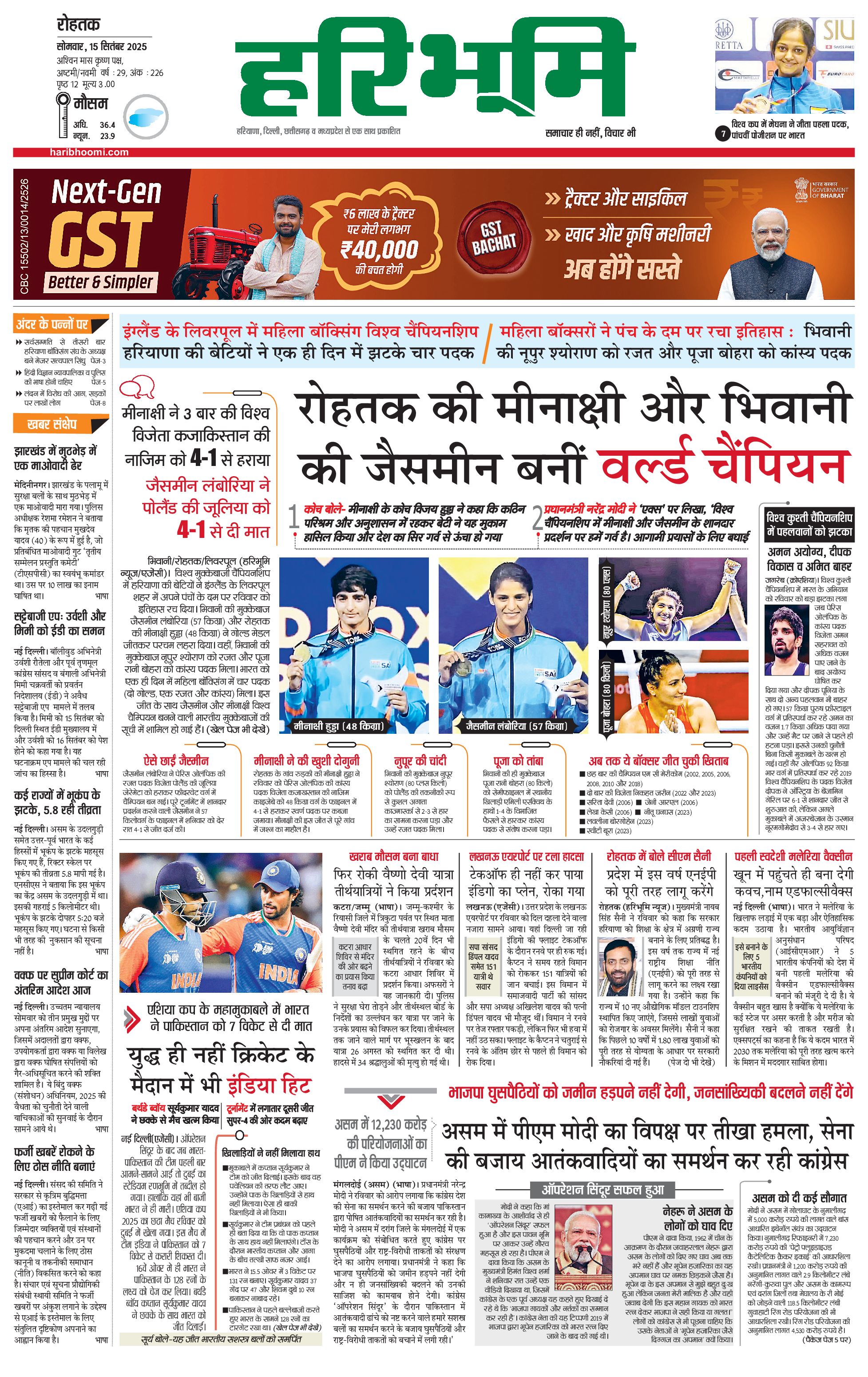 रोहतक मुख्य संस्करण - 15 Sep 2025 - - Page 1