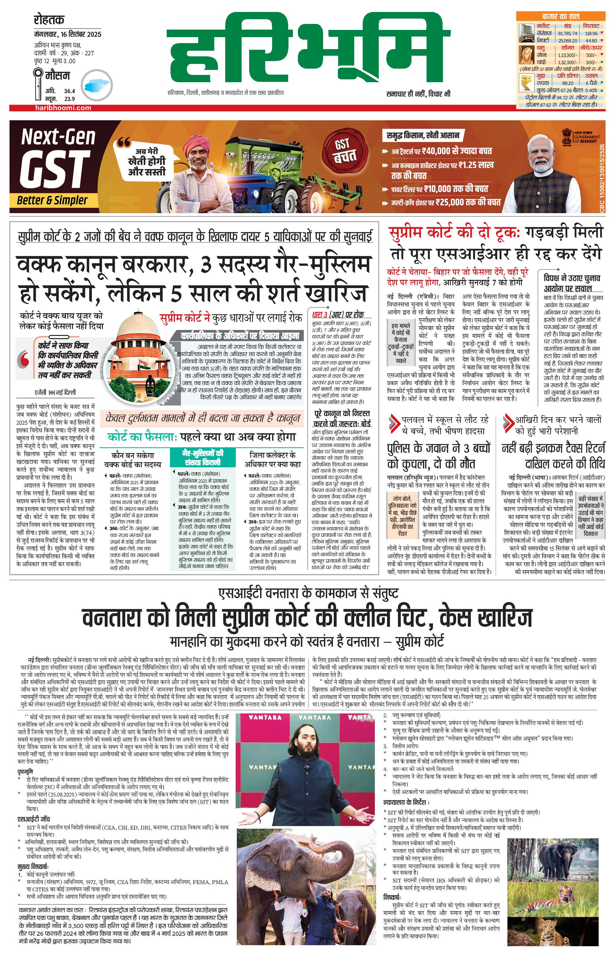 रोहतक मुख्य संस्करण - 16 Sep 2025 - - Page 1