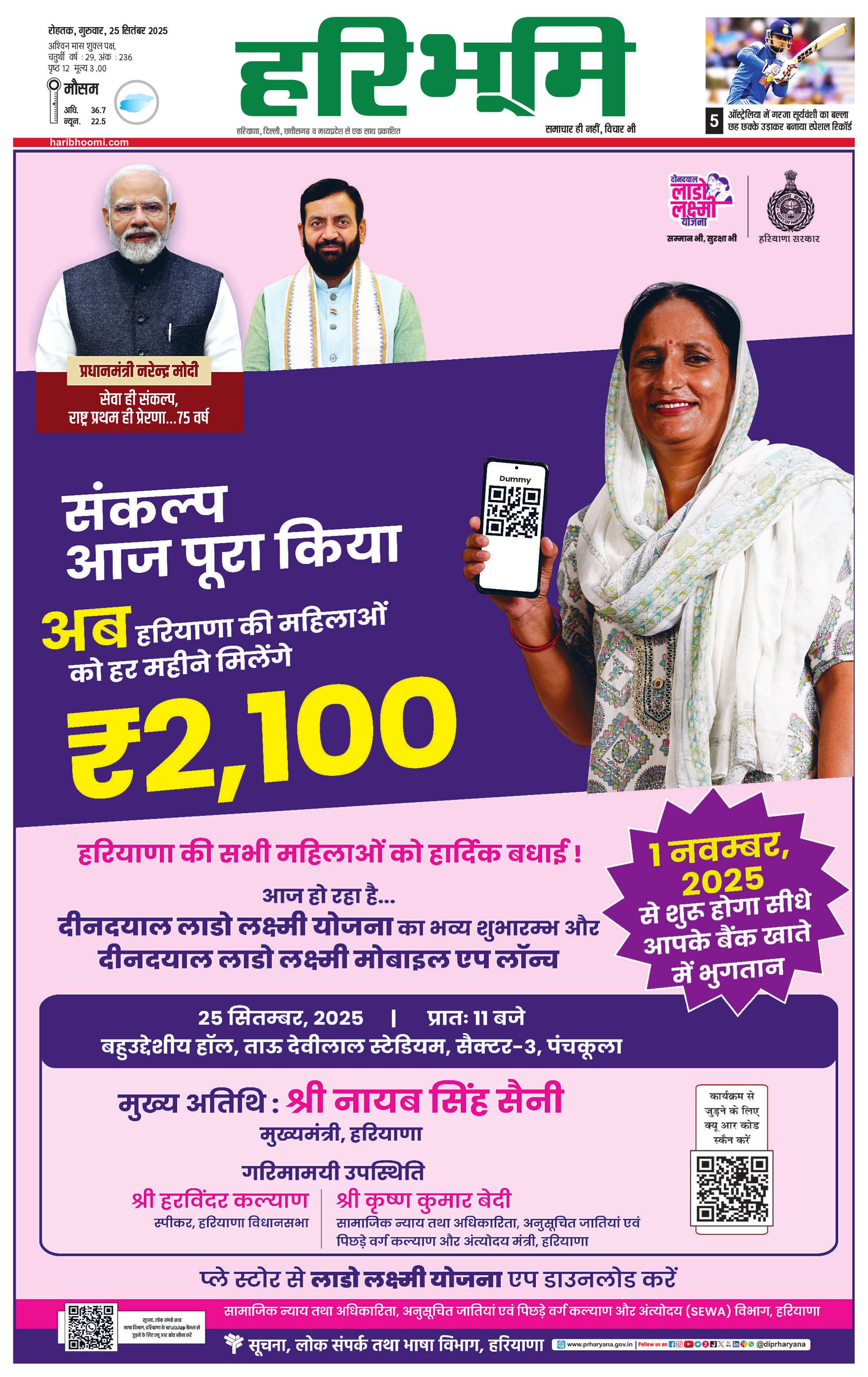 रोहतक मुख्य संस्करण - 25 Sep 2025 - - Page 1