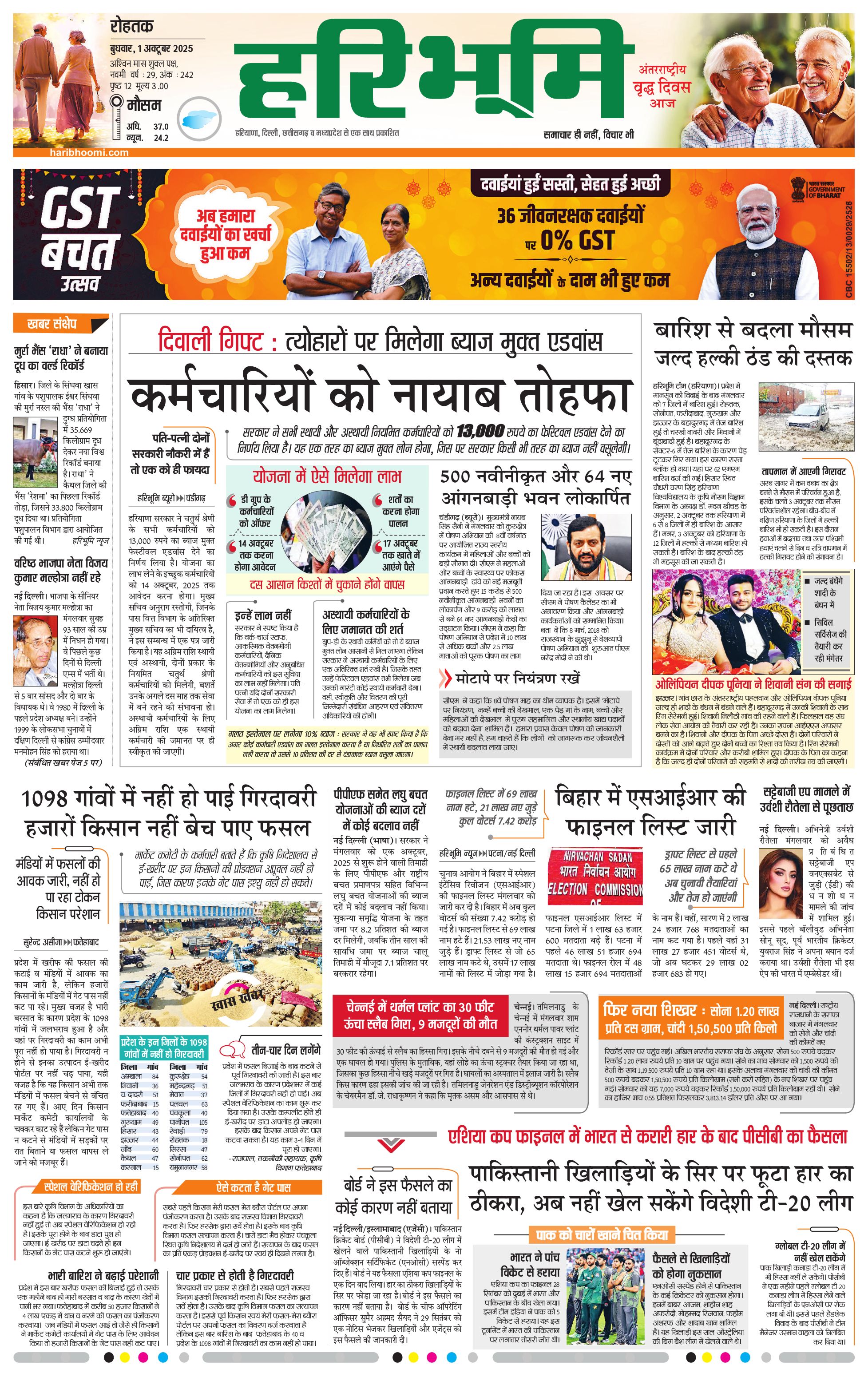 रोहतक मुख्य संस्करण - 01 Oct 2025 - - Page 1