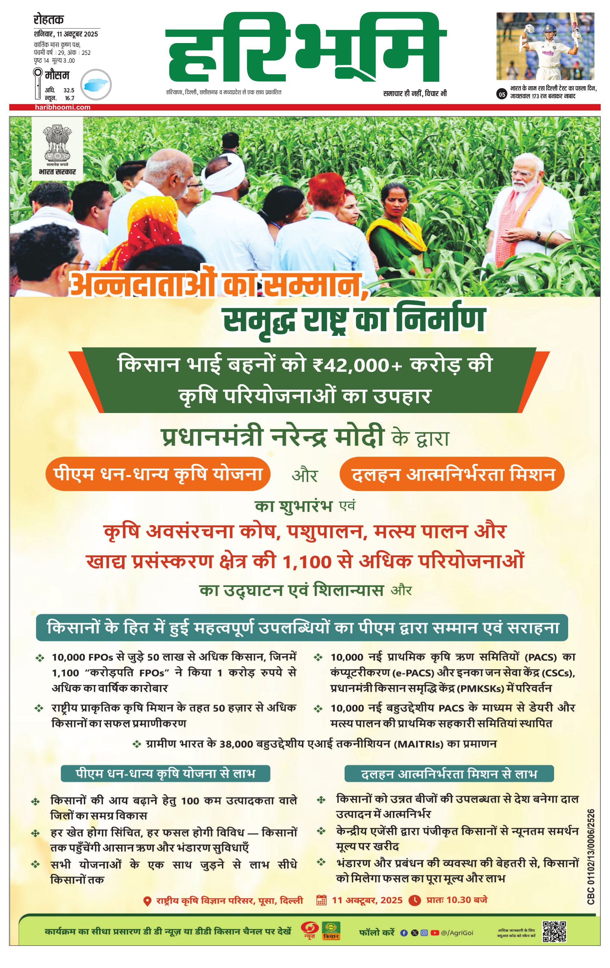 रोहतक मुख्य संस्करण - 11 Oct 2025 - - Page 1