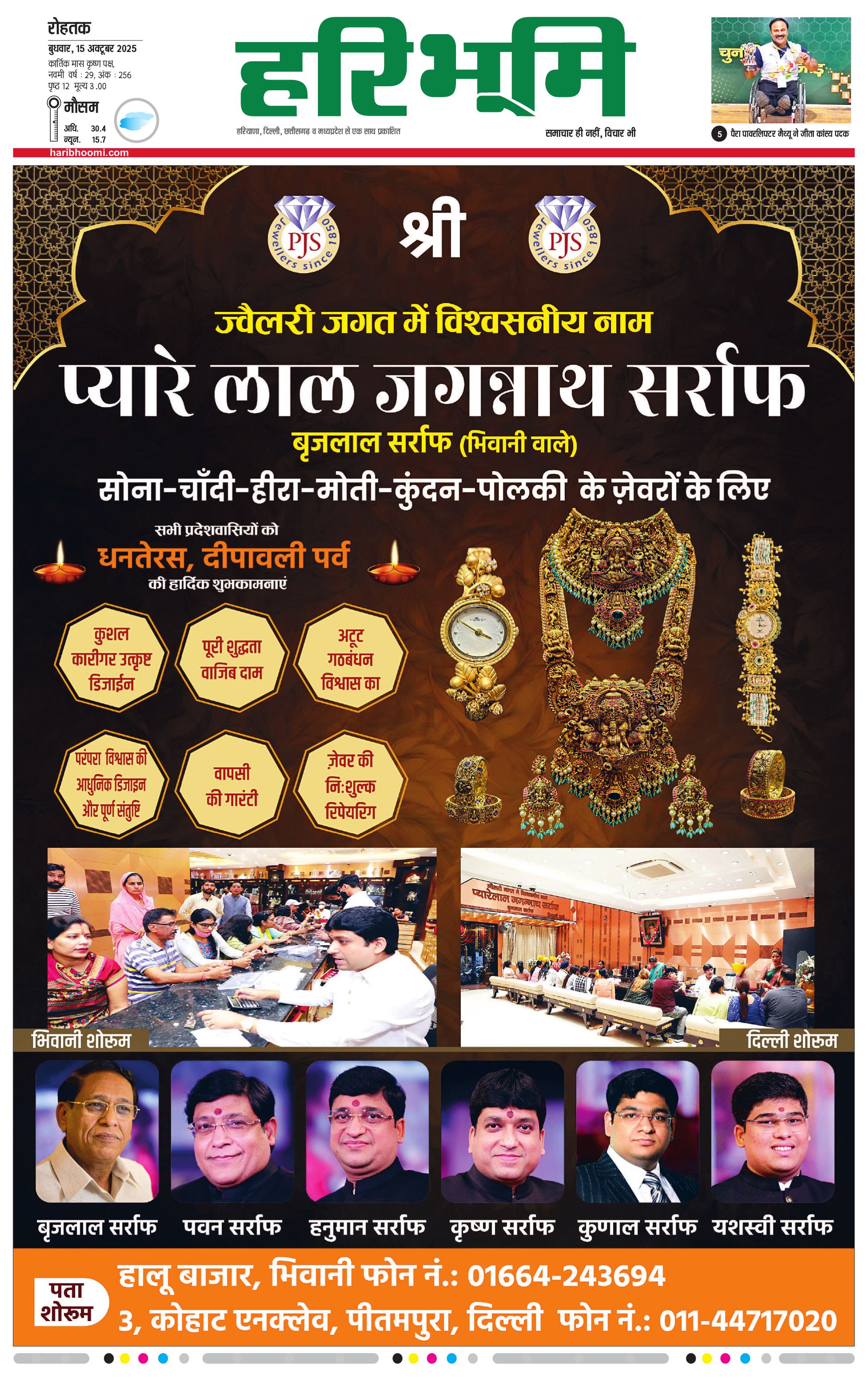 रोहतक मुख्य संस्करण - 15 Oct 2025 - - Page 1