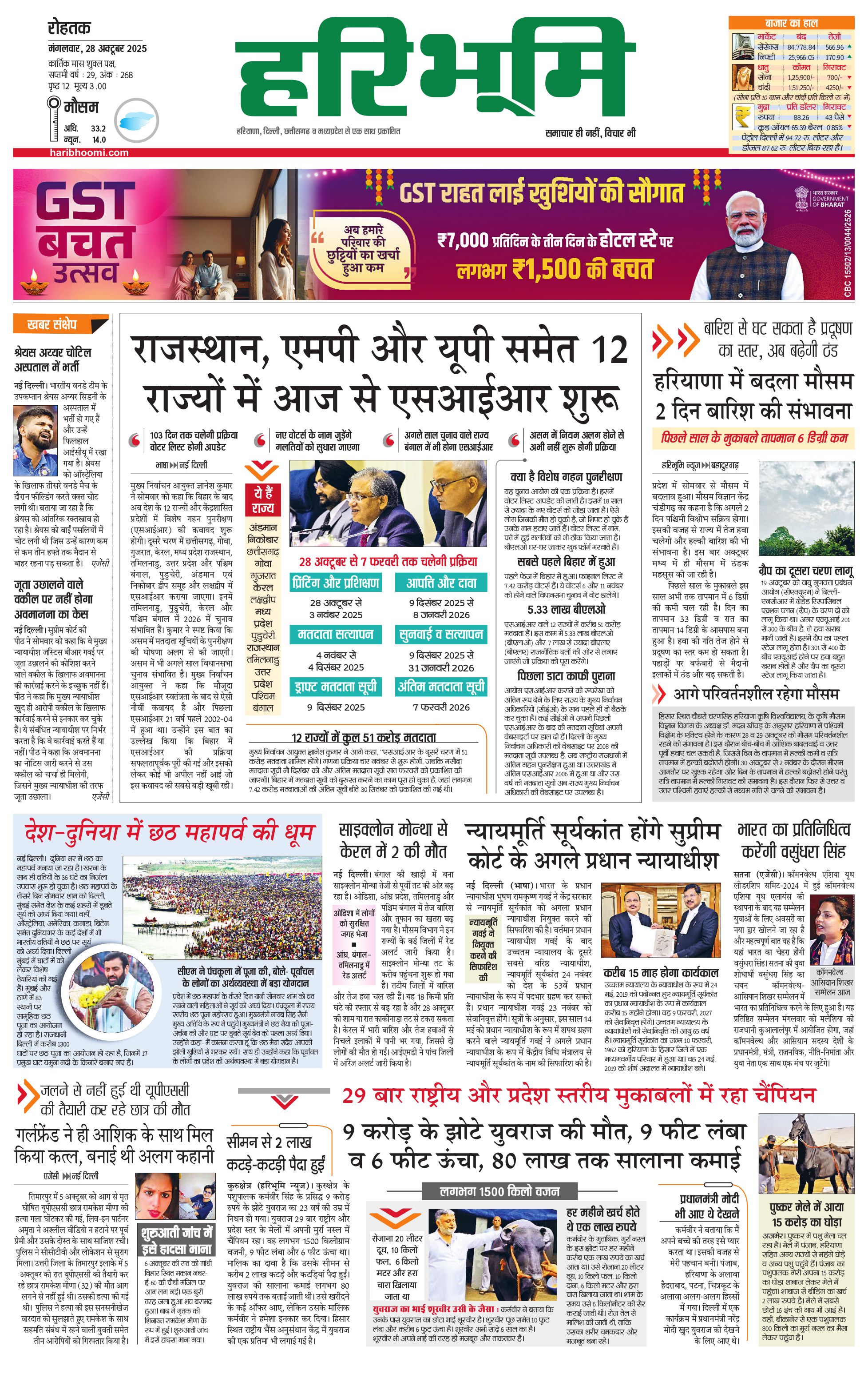 रोहतक मुख्य संस्करण - 28 Oct 2025 - - Page 1